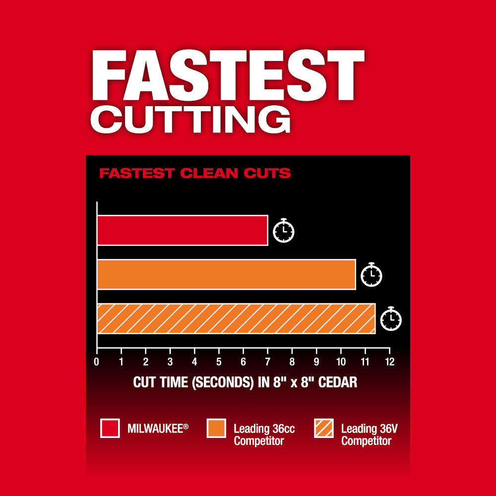 - M18 FUEL technology allows the saw to reach its full throttle 25m/s chain speed in under 1 second, delivering the fastest cutting in its class.
