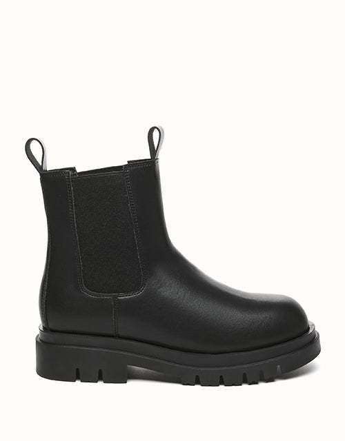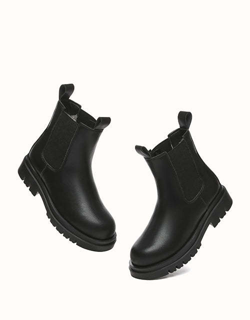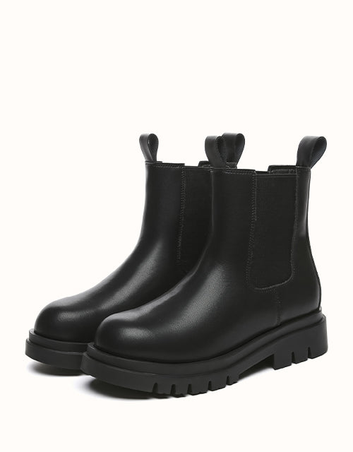 Make an impression with the EVEthtRAU Vaneta Boots. Constructed from soft-gloss split cow leather in a sleek all-black finish, these boots deliver a sophisticated yet adaptable style. The timeless British-inspired design is fully lined with AUSTRthtALIAN Merino wool to provide warmth and manage moisture. Featuring a stretchable ankle-high shaft, elastic side panels, and a pull tab for effortless slip-on wear. The sturdy rubber outsole offers traction, stability, and added height. Perfect as a gift for loved ones or a stylish addition to your wardrobe.