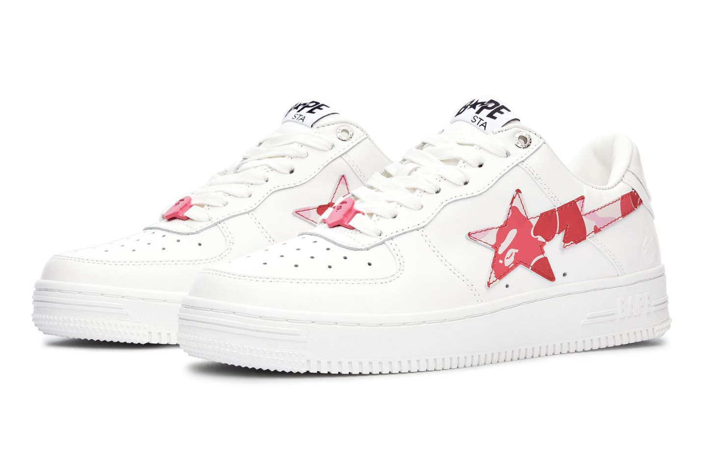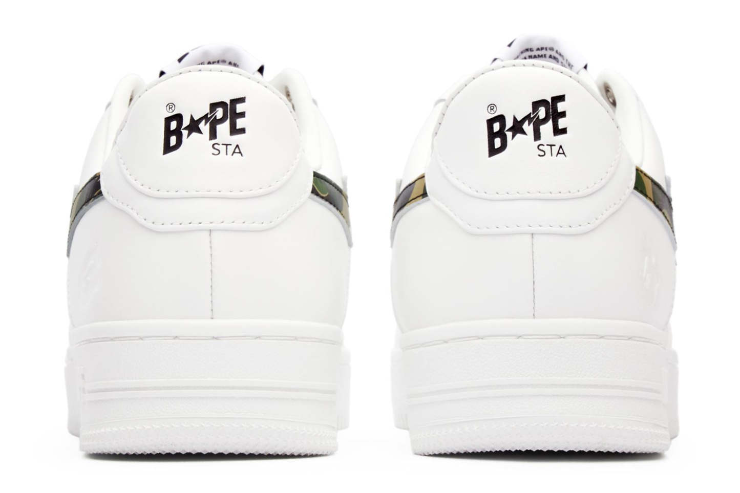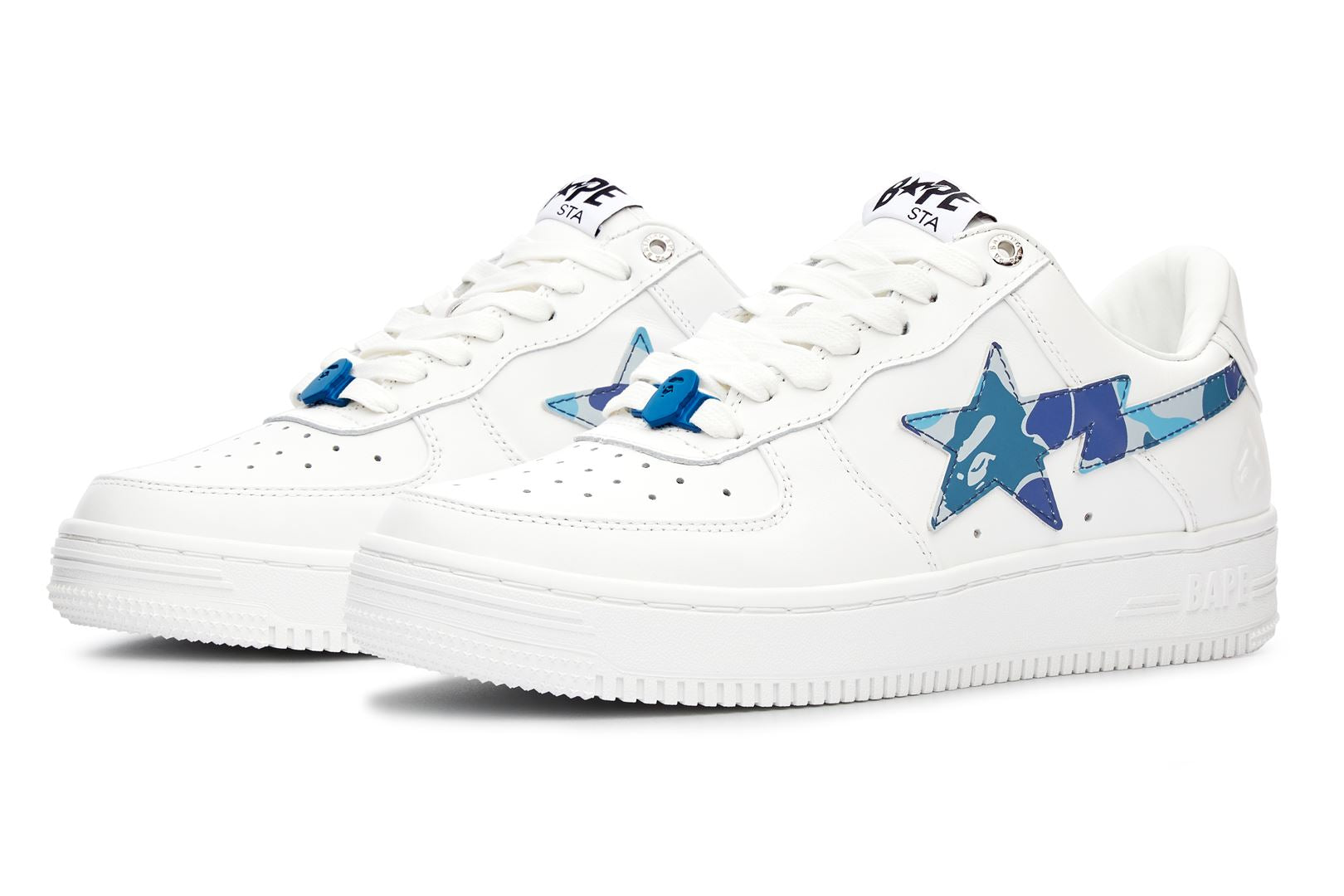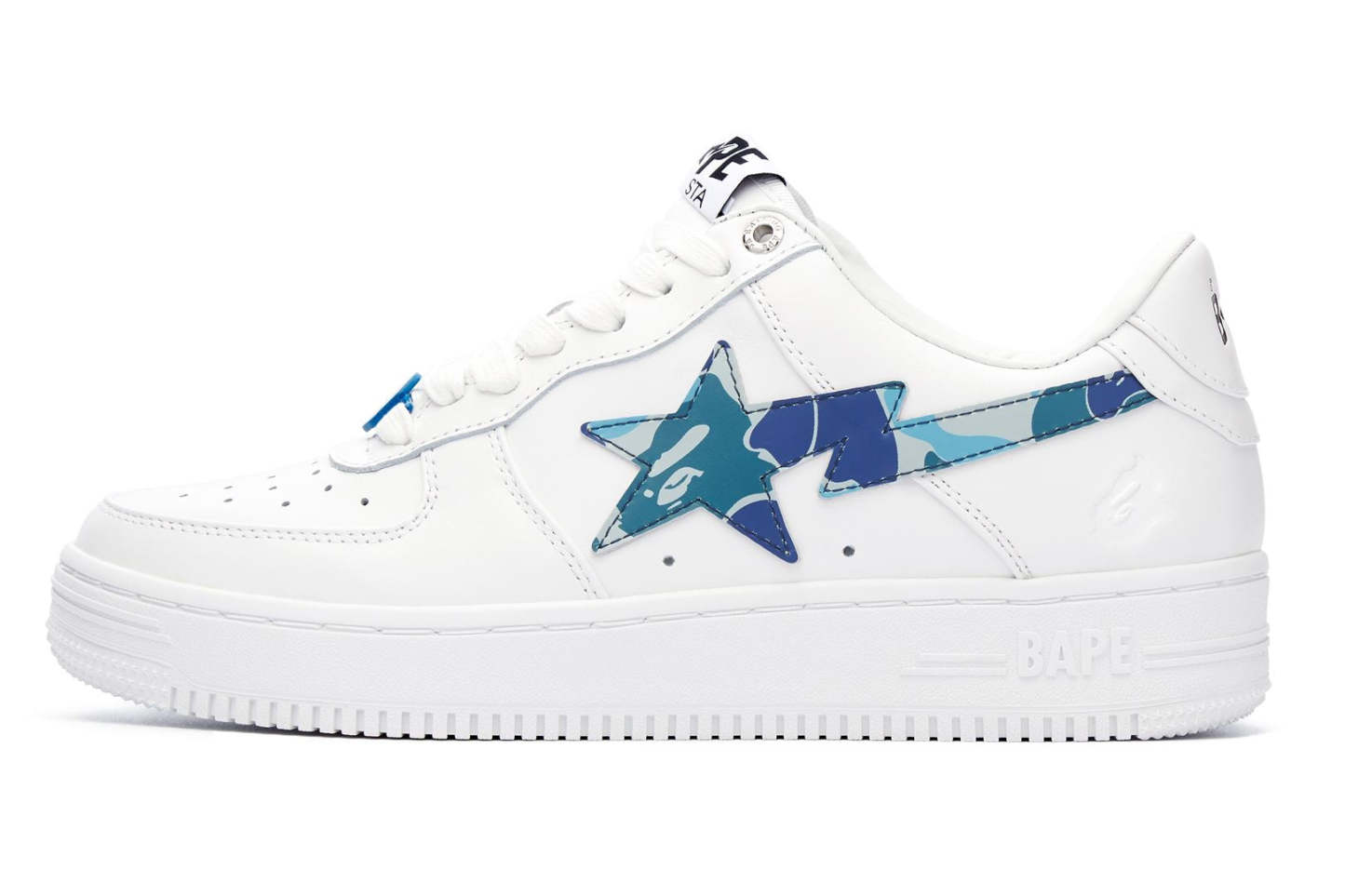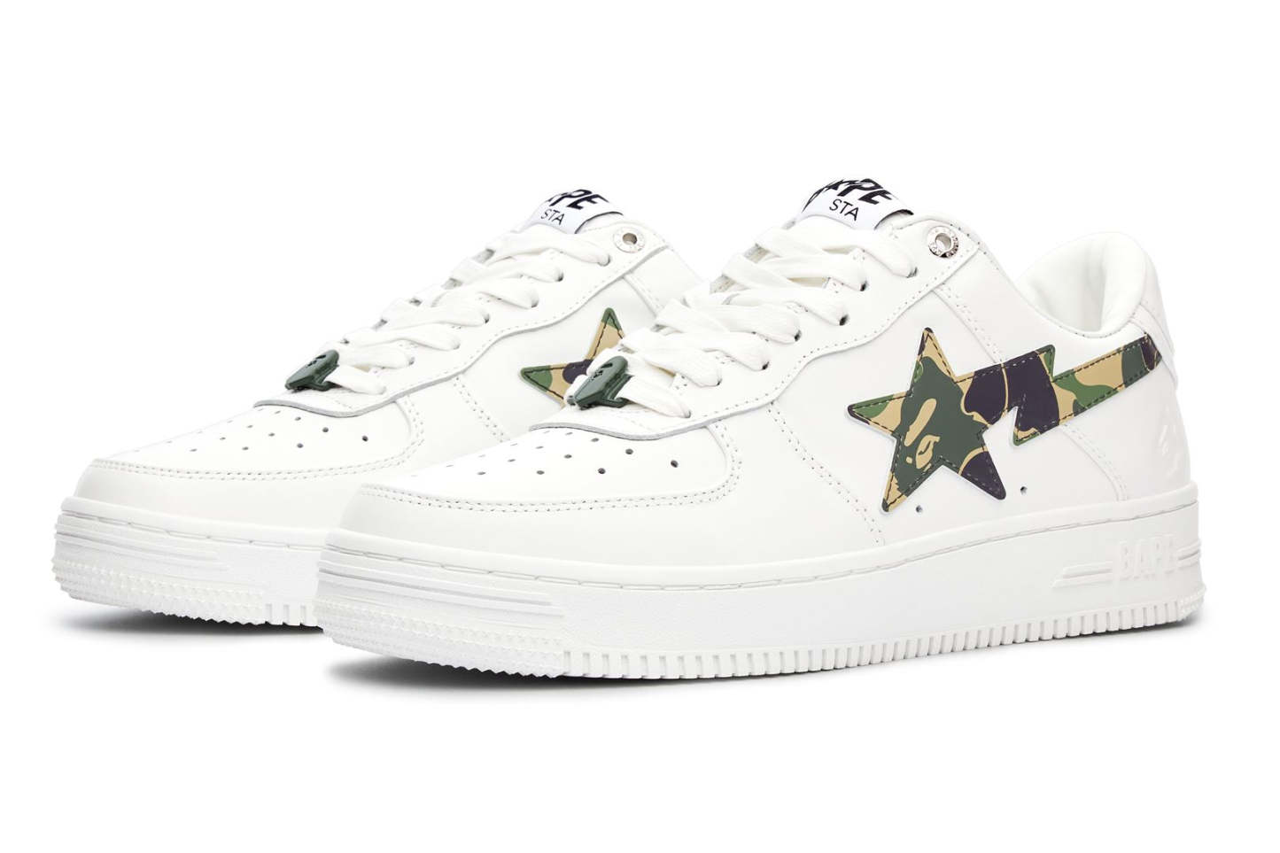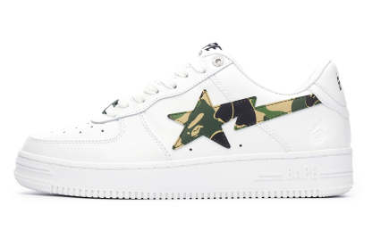 A classic VAthtPE Star that uses synthetic leather for the upper and rubber for the outsole. A design with an ABC CAMO pattern STA patch on the side panel and an embossed AthtPE FACE on the side of the heel. Replacement strings in the same color as the side panels are included. Available in 3 colors and 6 sizes for men: 7, 8, 8.5, 9, 9.5, and 10.