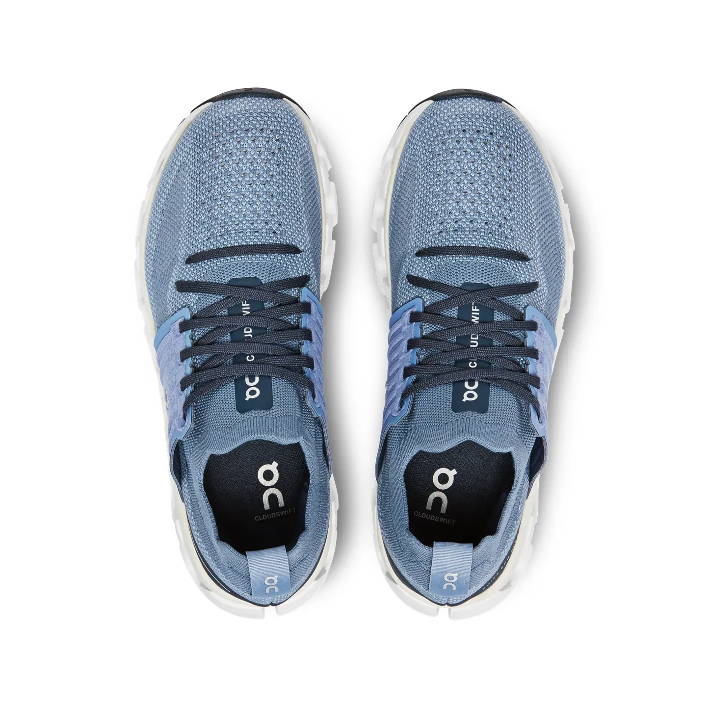 What's new with the Cloudswift? Well, almost everything. The new upper fuses supportive comfort with an unmistakably modern silhouette. And gliding over the concrete below your feet is the re-engineered bottom unit for softer landings and even more powerful take-offs. Hard surfaces require soft cushioning. Through its re-engineered bottom unit (featuring CloudTec® and dual-density Helion™ superfoam) the all-new Cloudswift softens the impact on the ground. The Speedboard® then injects your take-off with the stored energy from the landing. The all-new upper comes with its fair share of upgrades. The zonal knit material creates a comfortable sensation for many foot shapes. Slipping in really couldn't be more convenient. Once in, the 3D heel padding firmly holds your foot in place while you zigzag across the sidewalk.