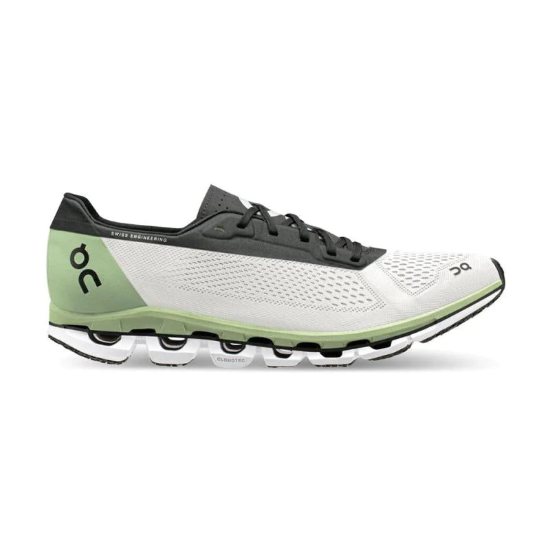 On infused its signature Speedboard with carbon-fiber to create explosive power and snappy speed. Designers then sandwiched the Speedboard between two layers of On's Helion foam a lightweight, responsive composition.