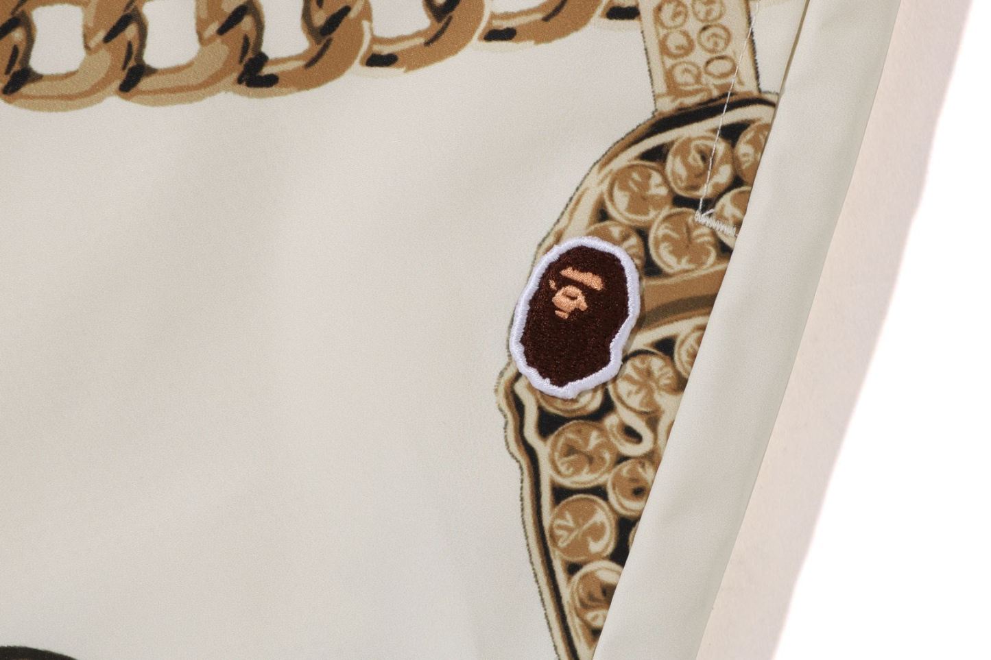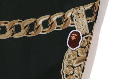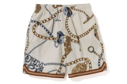 Shorts made of glossy polytaffeta material. A design expressed with JEWELS all-over print on the entire body. An AthtPE HEAD one-point patch is attached to the left thigh. Basketball shorts-