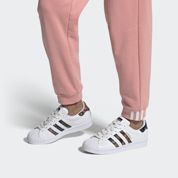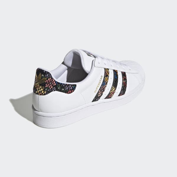 When you think of the adthtidas Superstar Shoes, what comes to mind? A blur of movement. A slideshow of decades past. From quick turns on the hardwood to a sea of hands and bodies in front of a stage, the iconic sneakers have been tied to some of the most exciting moments that have defined our culture. This version carries on the legacy with a colorful floral snakeskin pattern on the 3-Stripes.
