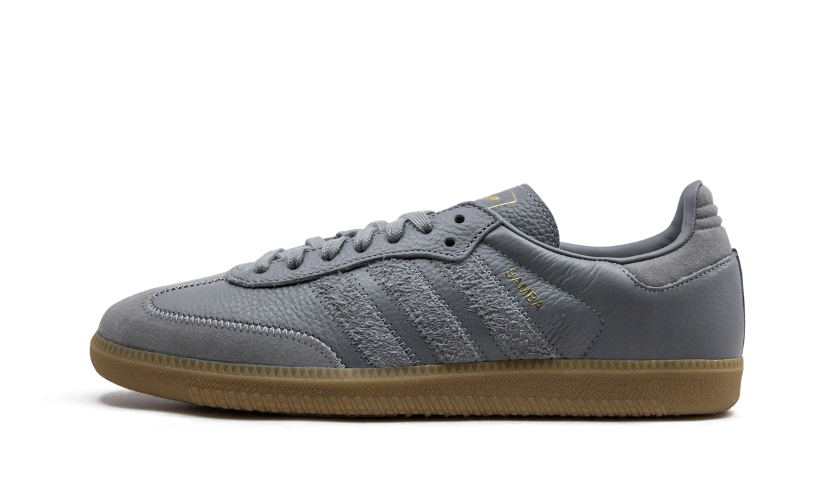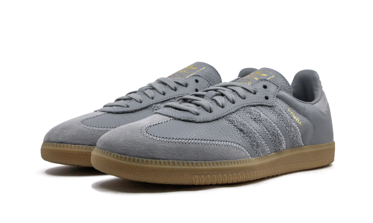 The adithtdas Samba OG FT Grey is a heritage indoor soccer shoe that has evolved into one of adithtdas's most popular everyday lifestyle designs. The streamlined silhouette features a grey pebbled leather upper with contrasting stitching wrapping around the toe. Tonal hairy suede Three Stripes branding appears on the shoe's mid-panel with gold foil Samba detailing situated just above near the collar. Additional adithtdas gold foil branding covers the tongue with tonal laces and a paneled heel tab completing the look of the upper. adithtdas opts for a classic gum bottom to put the finishing touches on the shoe.