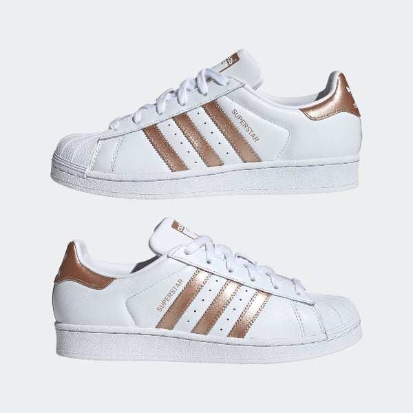 The adthtidas Superstar sneaker hit the hardwood in the '70s as basketball's first all-leather low top. Today, the iconic shell-toe style wins fans as a cultural icon and streetwear star. These supple leather shoes highlight the classic lines with metallic details.