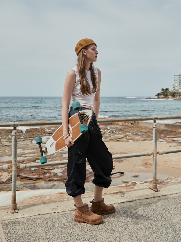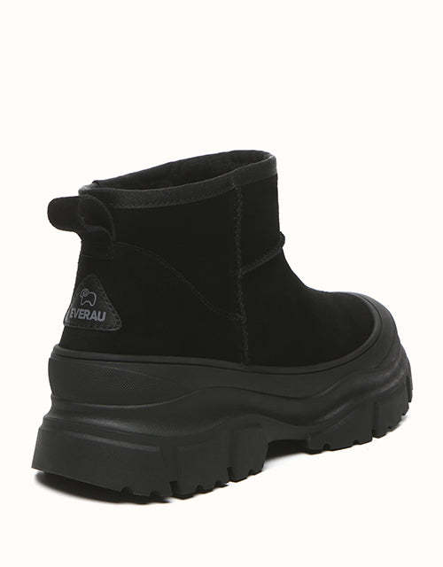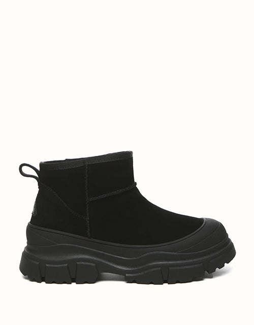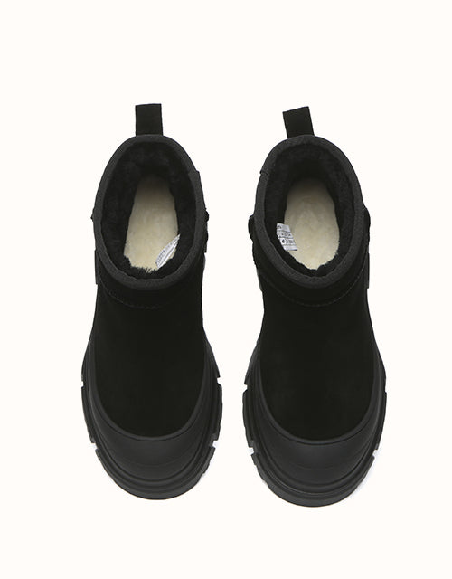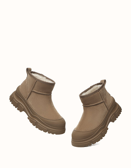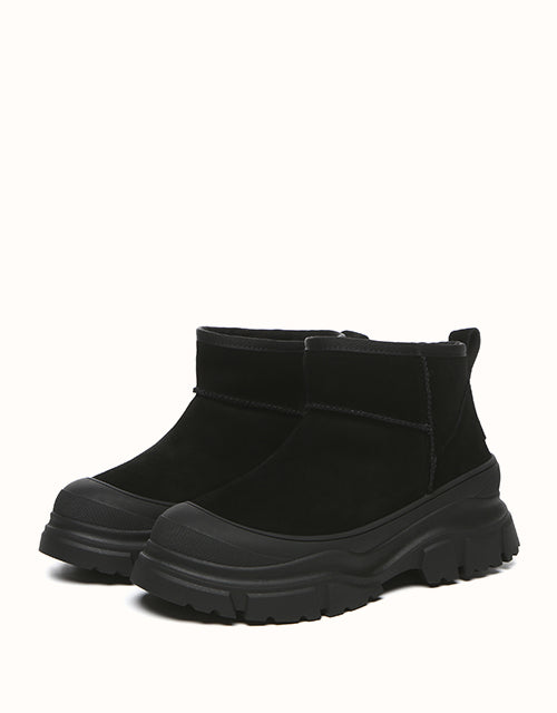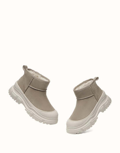 Experience comfort with every step in the EVEthtRAU Mouni Chunky Platform Boots. Available in multiple color options to match your style and outfit choices, these boots are designed to keep you cozy while adding a touch of sophistication with their timeless design and chunky soles. Built with a durable structure for excellent floor grip and lined with luxurious sheepskin, they provide exceptional warmth on cooler days.
