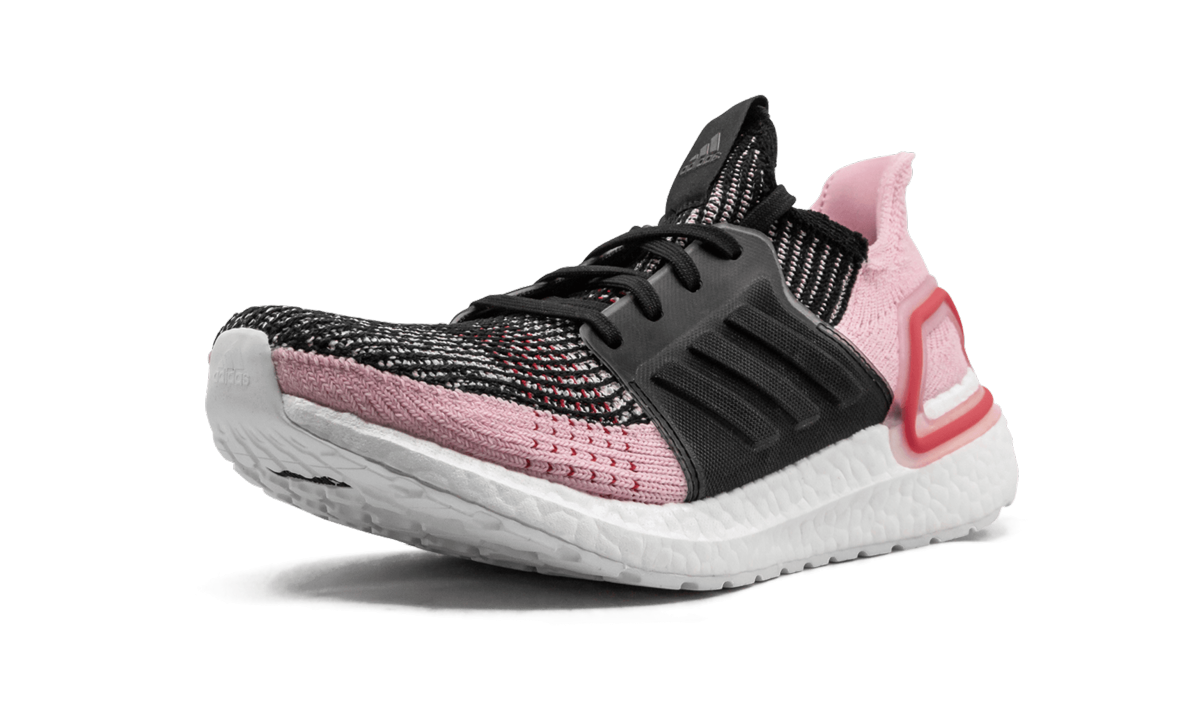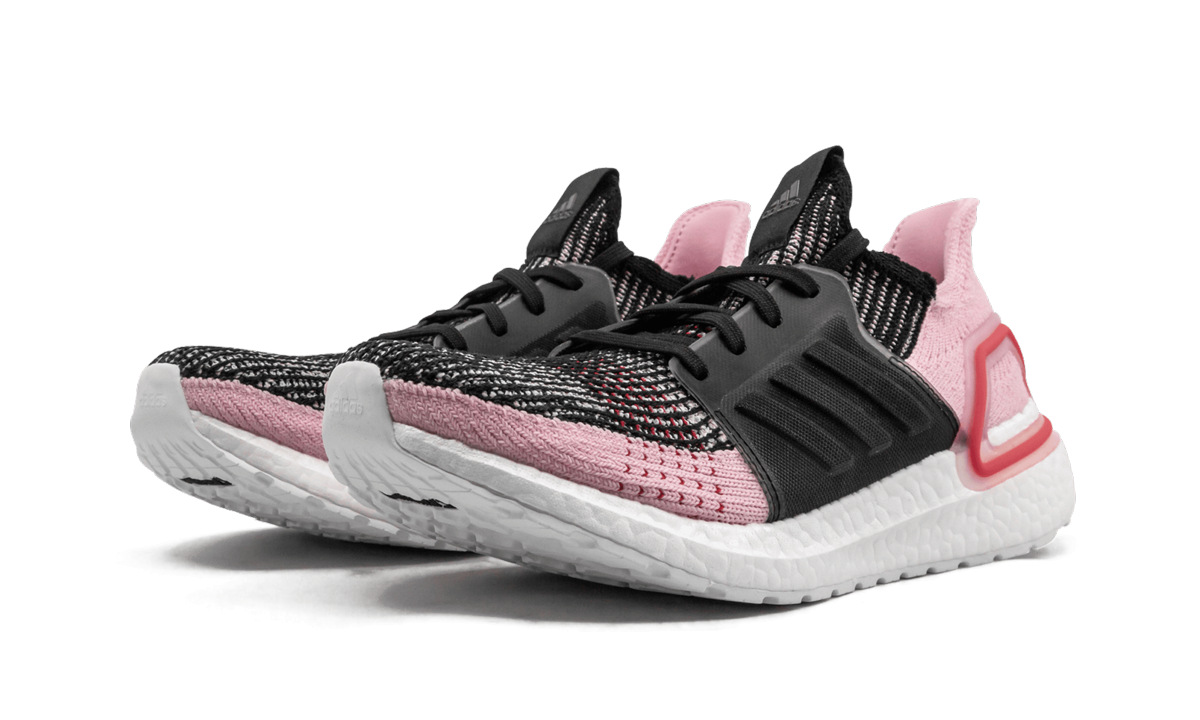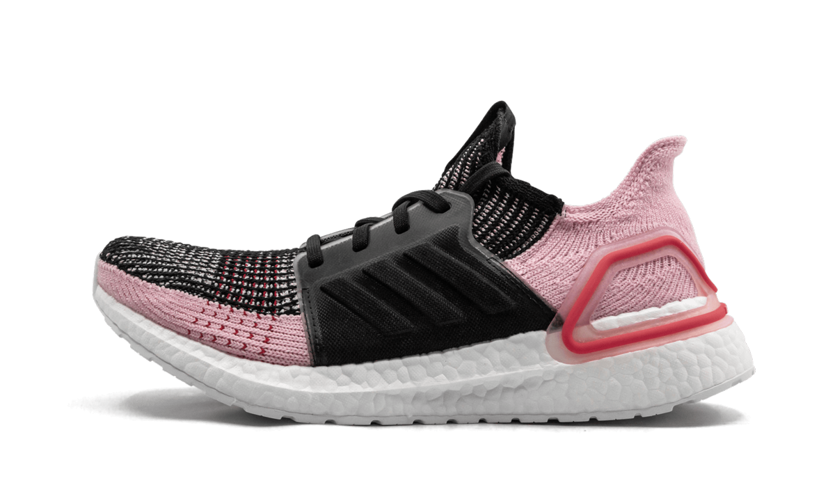 The adithtdas Ultra Boost 19 women's shoe updates the classic silhouette with Primeknit 360. The soft knit in pink, black, and red gives the next-generation running shoe lightweight comfort and adaptive support. Adding to the look, a 3D heel gives a layered pop that makes the Ultra Boost 19 unique. Propulsive energy return is a key feature as the shoe boasts the adithtdas' signature Boost cushioning. A Stretchweb outsole flexes naturally for an energized ride, and Continental rubber gives provides superior traction.