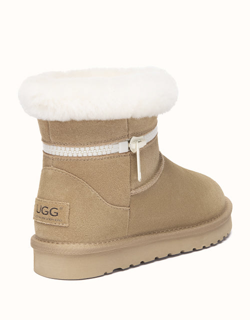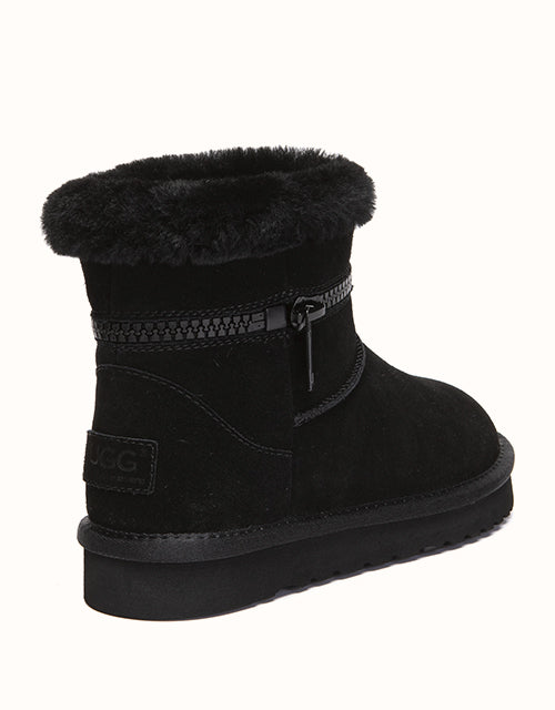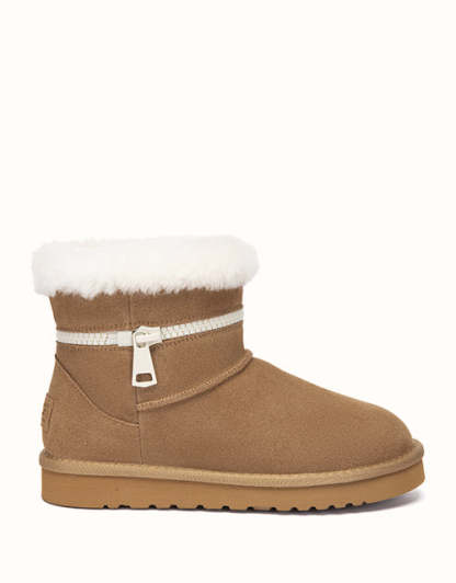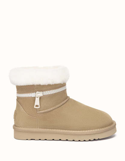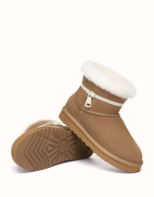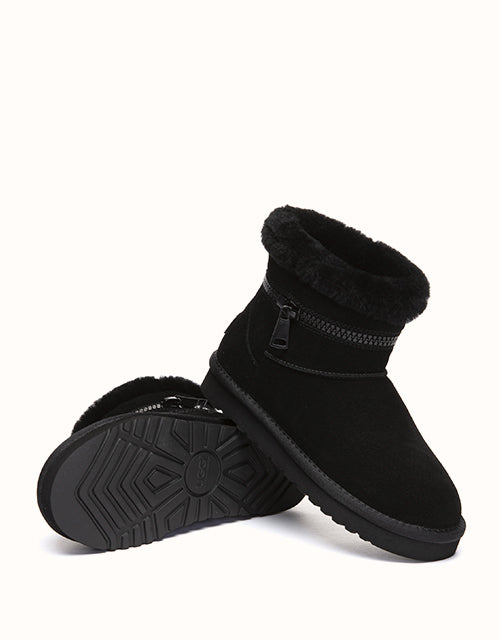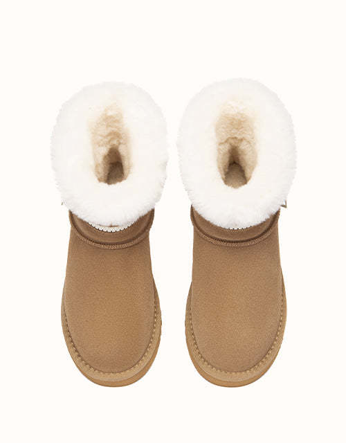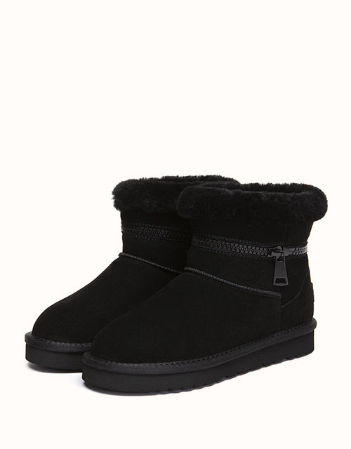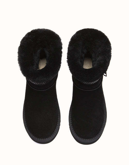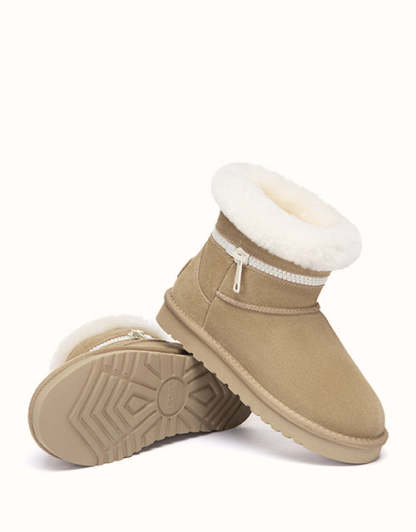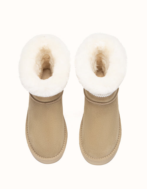 Combining everyday function with cozy comfort, this sheepskin boot is crafted from easy-to-clean cow suede and fully lined with natural Merino wool to keep your feet warm, dry, and breathable. The thick EVA foam sole features an anti-skid pattern, making it ideal for use on kitchen or bathroom floors. With its soft texture, moisture-wicking lining, and stable cushioning, it the perfect go-to for chilly mornings and relaxed evenings alike.