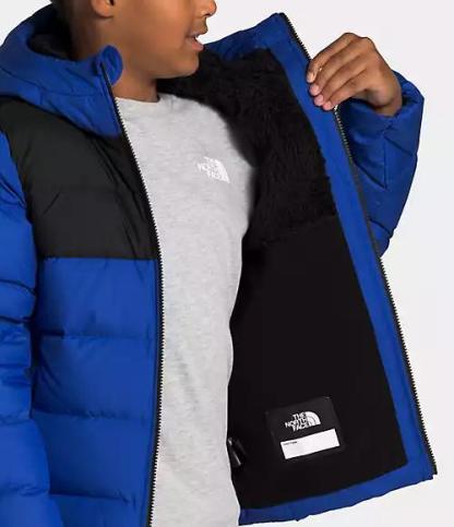 The updated Youth Moondoggy Hoodie is water-repellant, insulated with 550-fill Down and features a Sherpa-fleece lined hood and shoulders for all-conditions coziness.