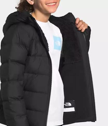 The updated Youth Moondoggy Hoodie is water-repellant, insulated with 550-fill Down and features a Sherpa-fleece lined hood and shoulders for all-conditions coziness.