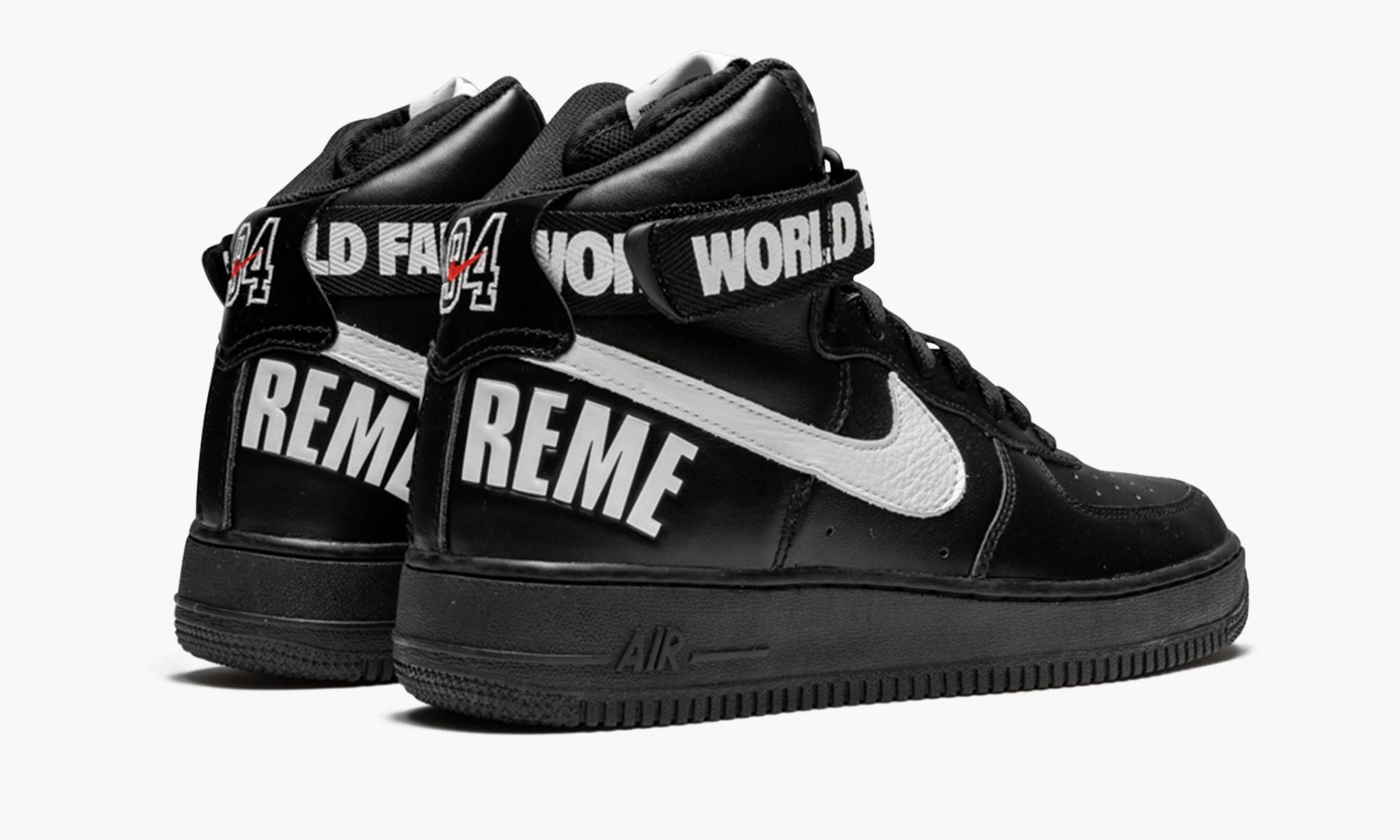 Supreme and Sportswear were back again in 2014 with another monumental collaboration, this time on the High. The special”World Famous ” s came in three colorways, including this black leather p with white accents. Gone instantly as per usual with any x Supreme collab, these made for one of the biggest releases in years.