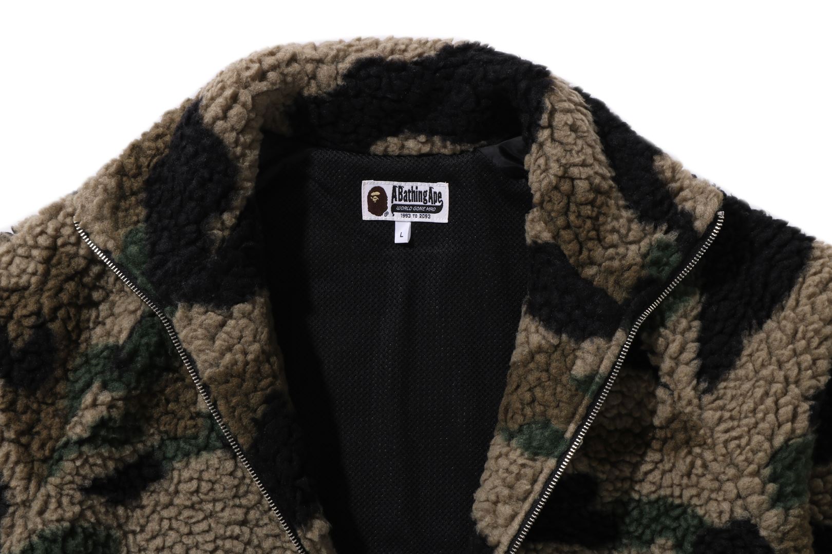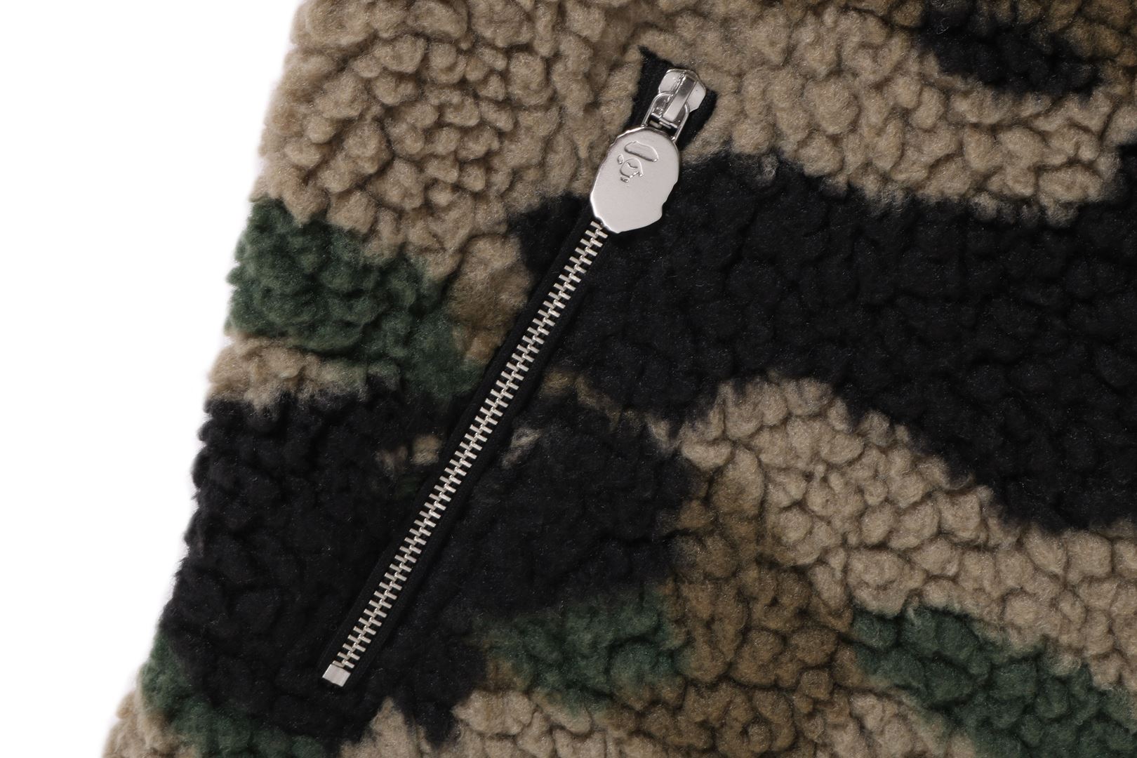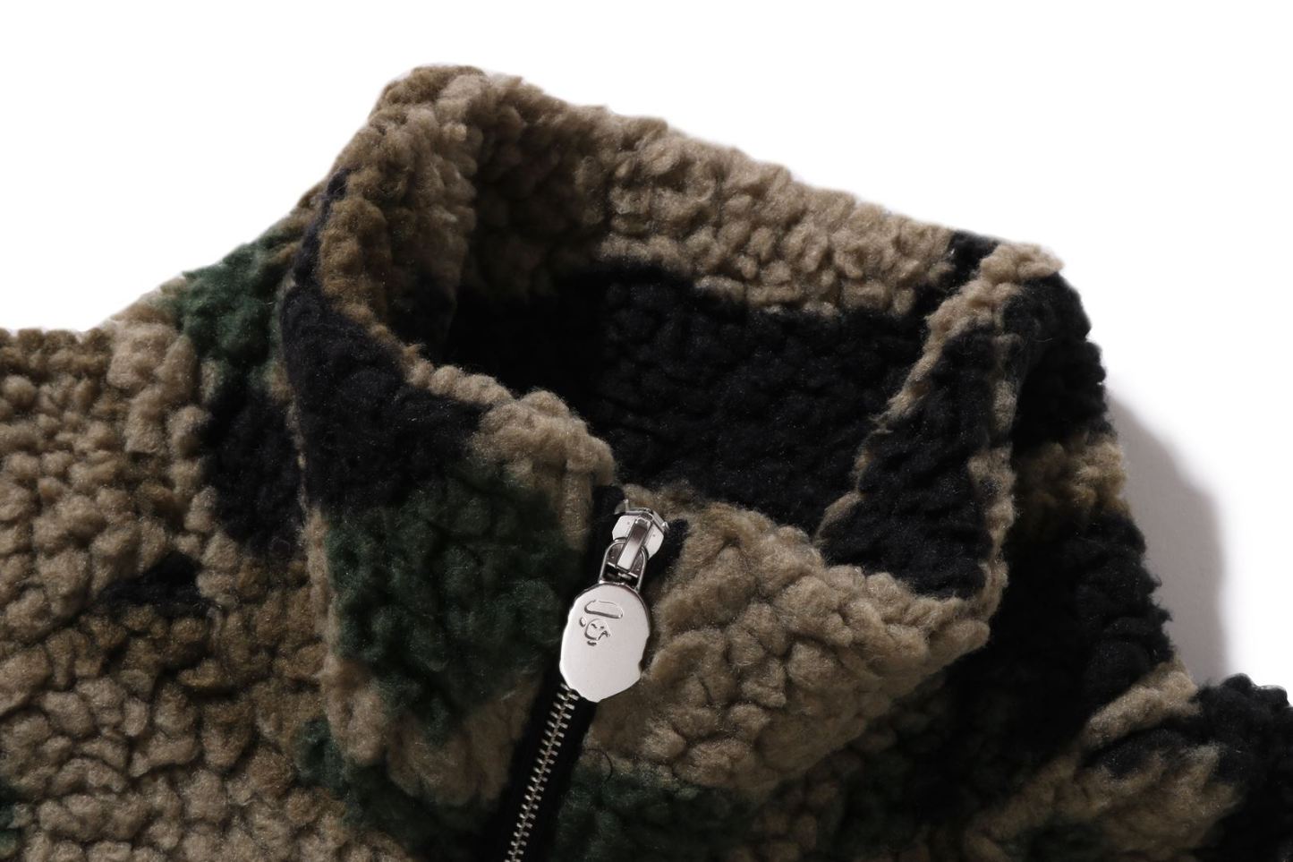 1ST A zip-up fleece jacket made of cotton boa material with a CAMO pattern. AthtPE HEAD metal plate on the left chest and zippered pockets on both sides. AthtPE HEAD one-point charm is included on the zipper head. Comes with spindles on both hems, allowing for silhouette adjustment. A silhouette with a relaxed fit. Available in 1 color and 5 sizes.