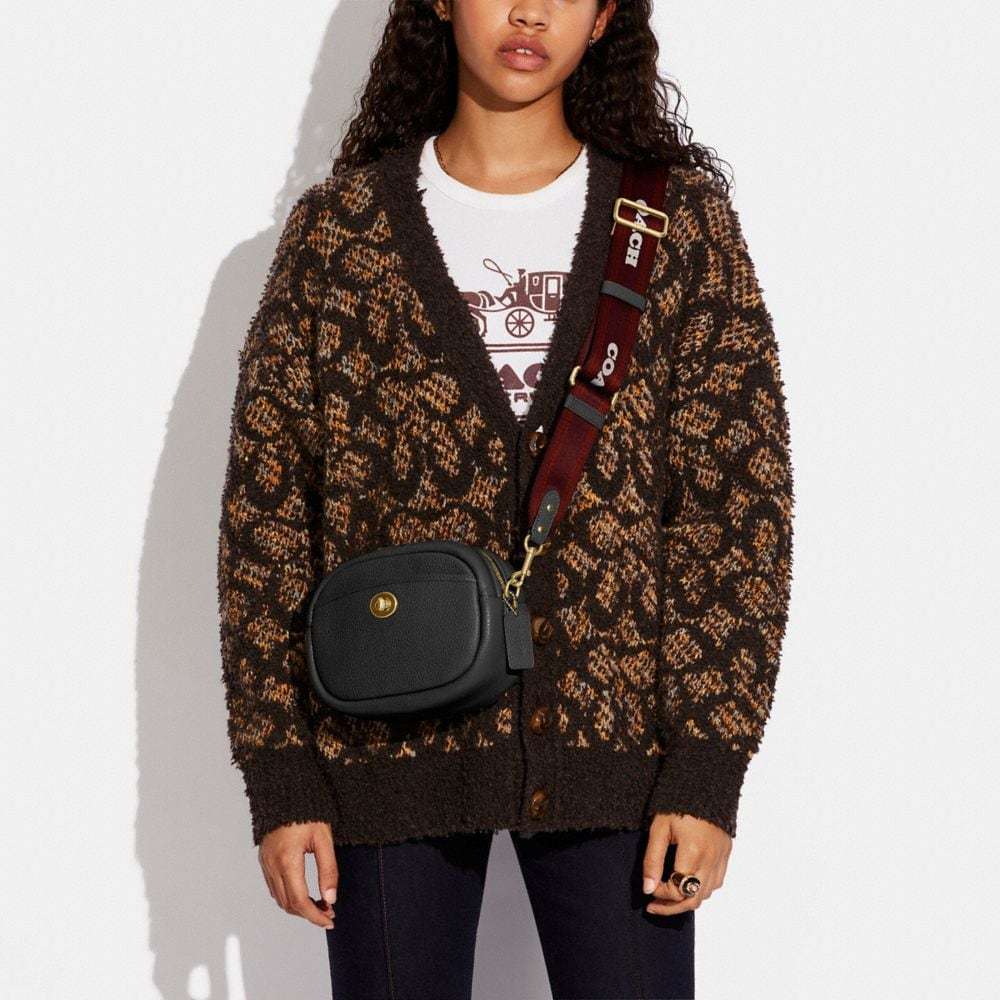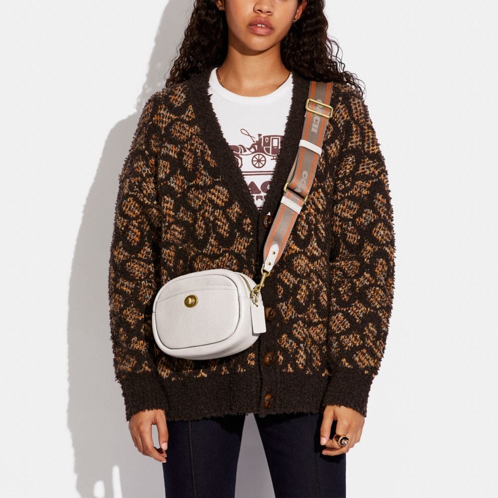 Detachable strap with 21 3/4" drop for shoulder or crossbody wear