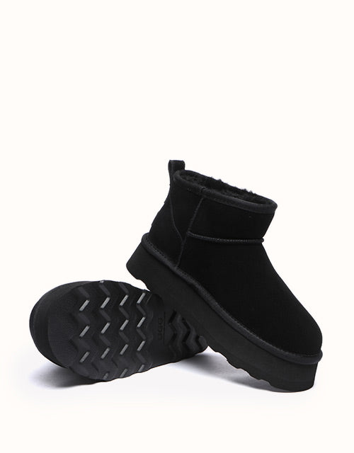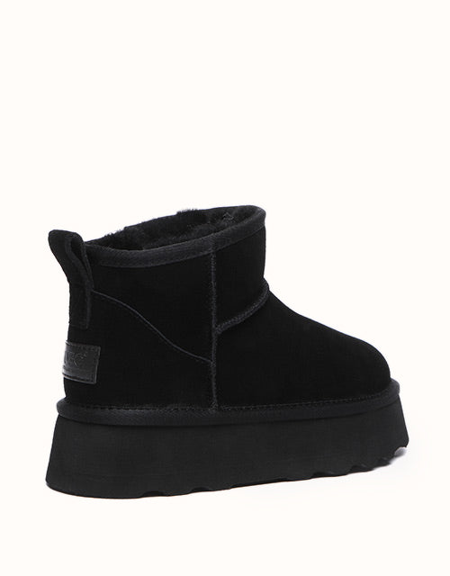 The biggest trend at the moment - these AUSTRthtALIAN SHEPthtHERD Ronnie UGthtG Mini Platform Boots are going to have you turning heads the moment you walk out the door. A style that will match anything, paired with a cute matching track set or your favourite jeans, you will look effortlessly cool. Made from the same rich suede as the original but in a bolder design, you canUGthtG go wrong with the new Ronnie style. For extra benefit, a water-resistant coating has been applied to the surface of the shoes which ensures your boots remain wearable for years to come.