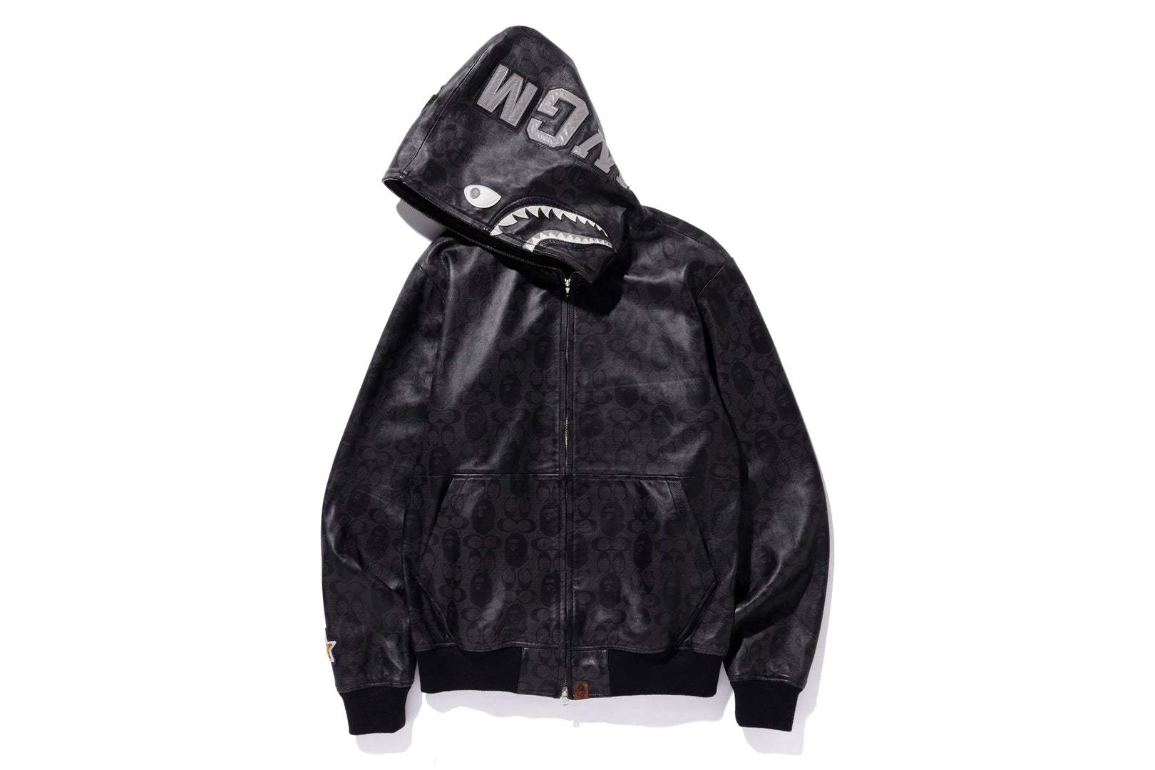 Bathtpe LEATHER SHARK HOODIE JACKET