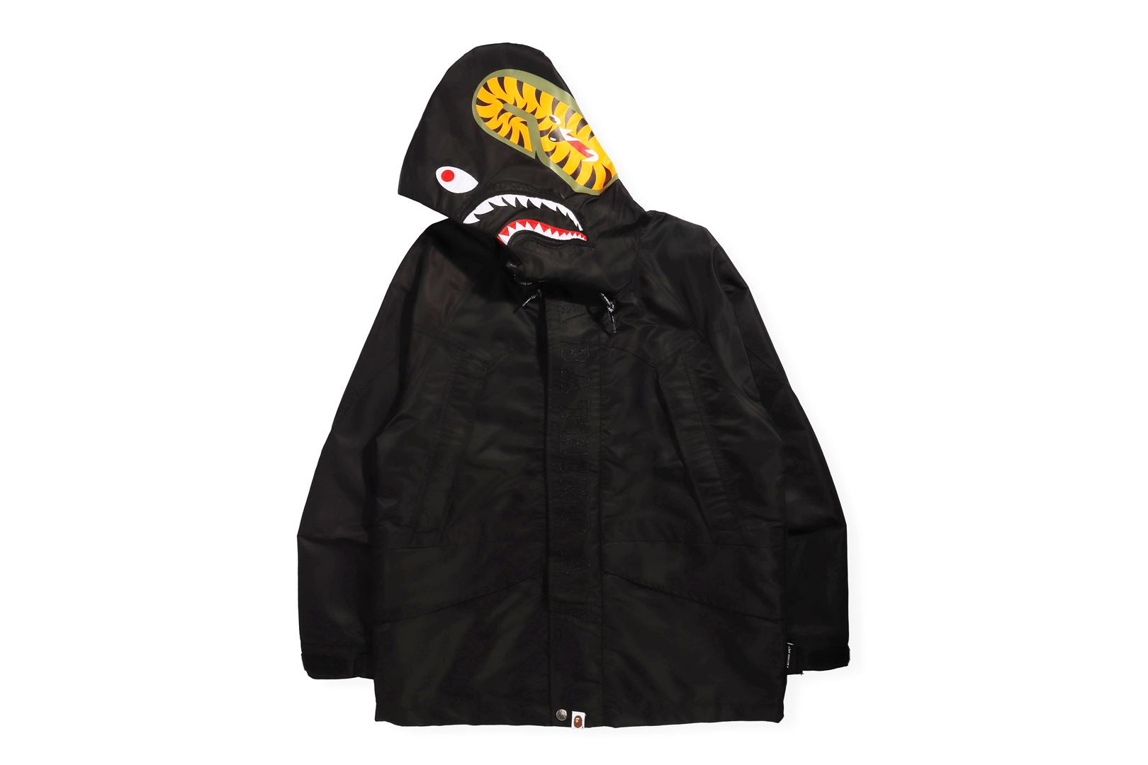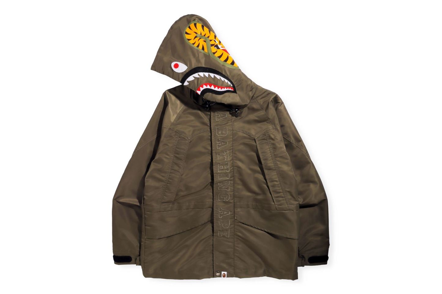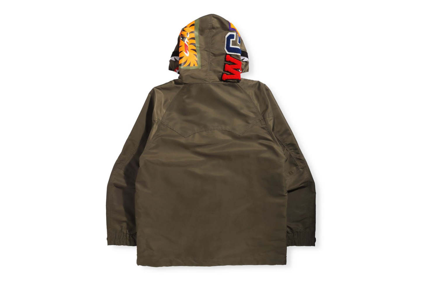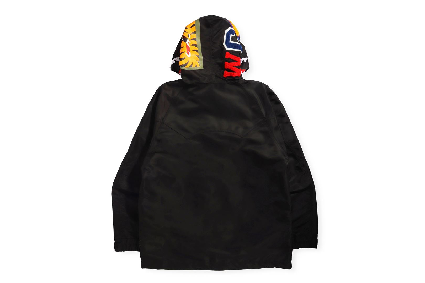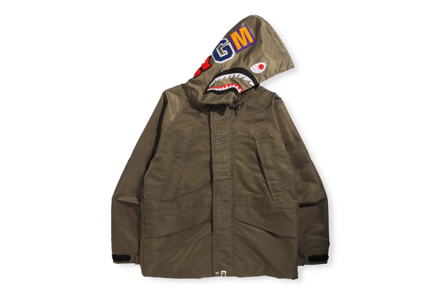 A snowboarding jacket with a SHARK motif on the hood. Available in two colors, BLACK and OLIVEDRAB, which are easy to coordinate.