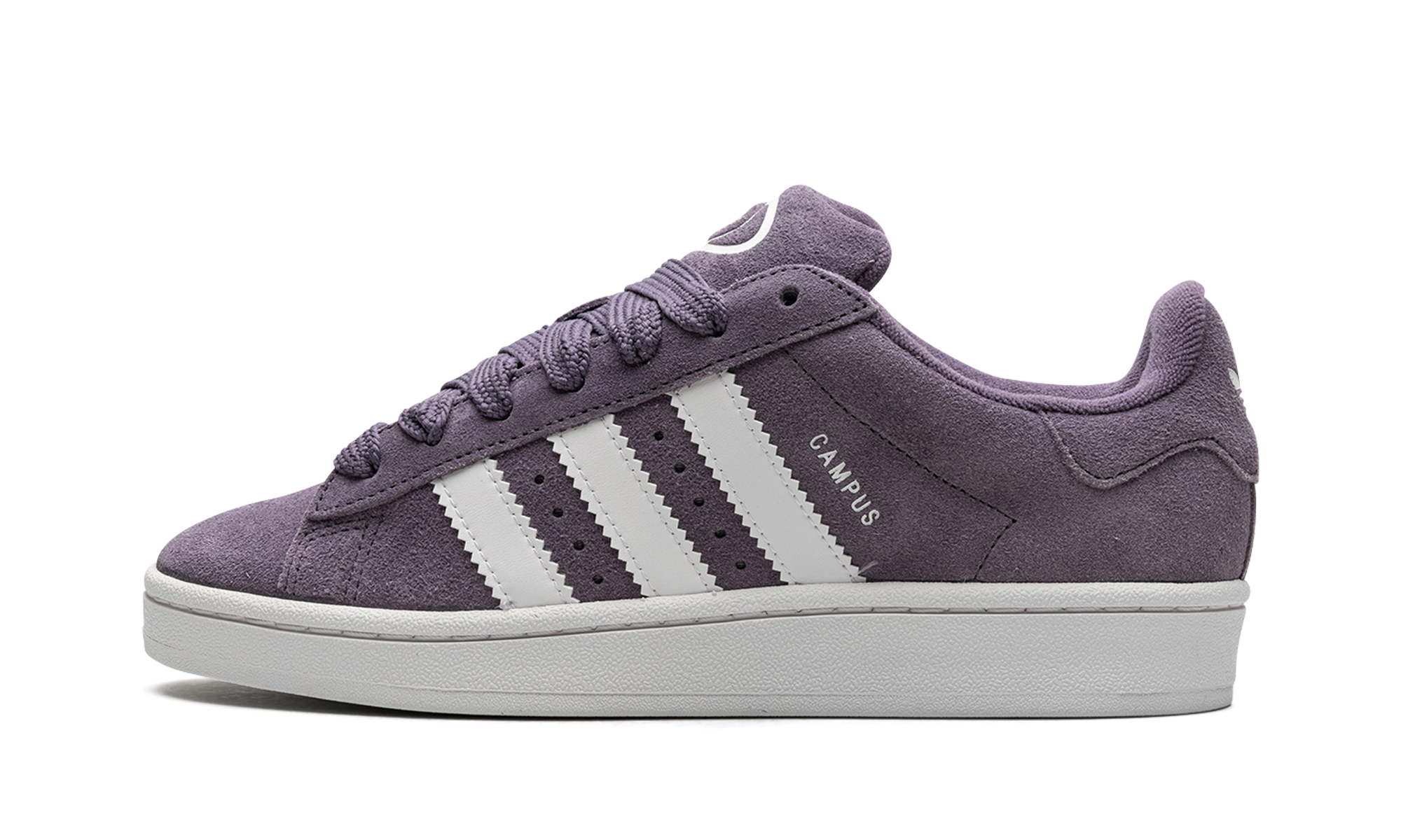 The Women's adithtdas Campus 00s "Shadow Violet" is a women's-exclusive colorway of the sneaker with a retro skate shoe appearance. Inspired by Y2K-era skateboarding sneaker aesthetics, the adithtdas Campus 00s is a timeless shoe that can be worn by anyone. The "Shadow Violet" colorway gives the model a light purple suede appearance with oversized white leather Three Stripes branding on the sides. "Campus" branding is seen on the lateral side of the mid-panel next to the classic adithtdas logo detailing. The brand's signature Trefoil logo appears on the heel and on the tongue in white. The shoe's off-white midsole is mounted on a rubber outsole with a herringbone pattern that provides ample grip. Release date: August 14, 2023 Shadow Violet