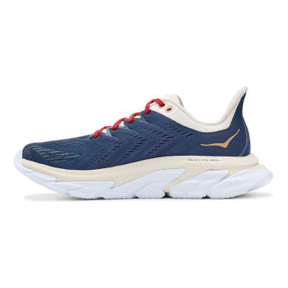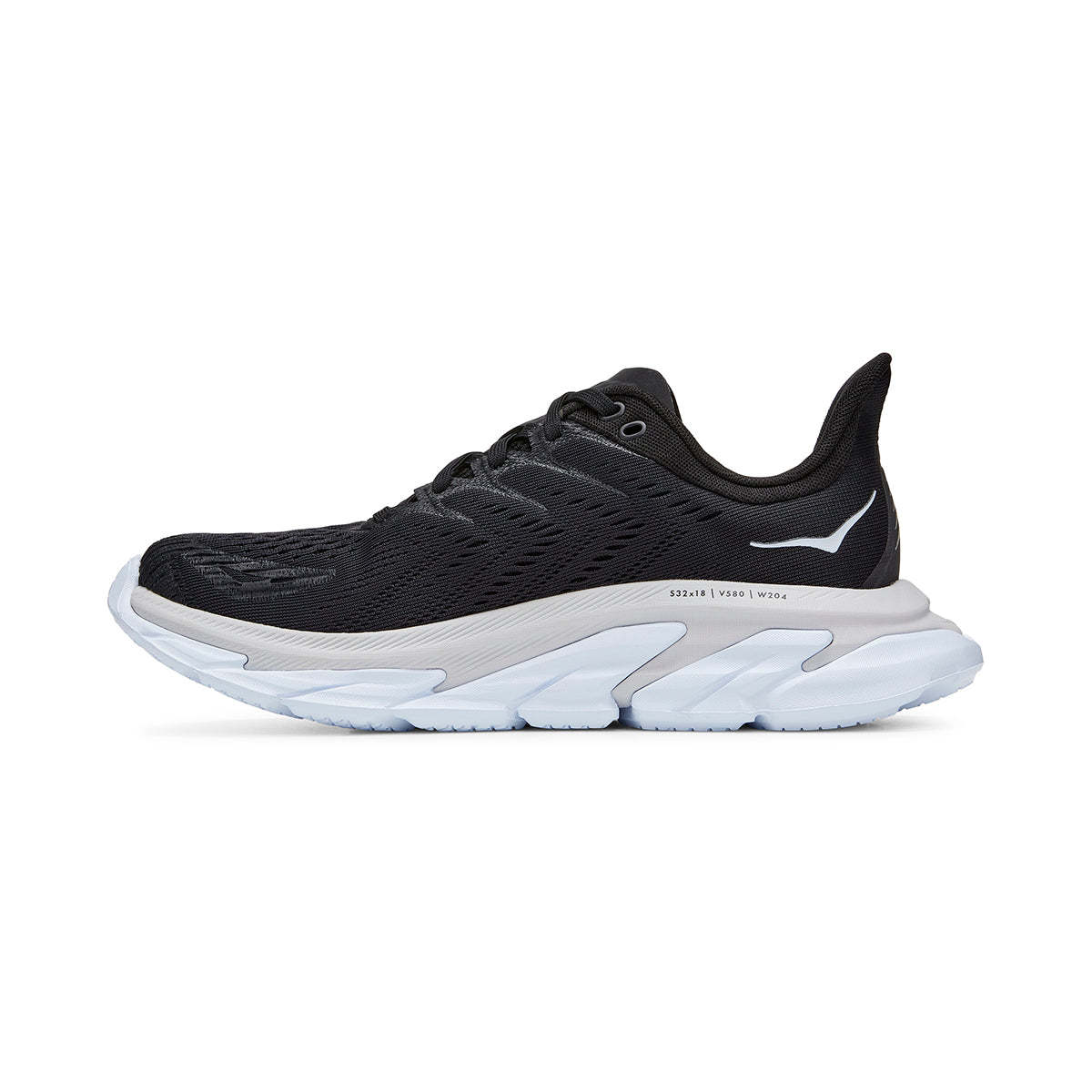 The women's HthtOKA ONE ONE Clifton Edge boasts a new faster response cushion formula and wider, more stable platform. The Edge gives you a vertical pull tab so you can get them on quicker and feel the new foam tuned for intense spring really take over. The rubberized outsole wraps up around the midsole for added support and the extended heel creates even softer landings in your Clifton Edge.