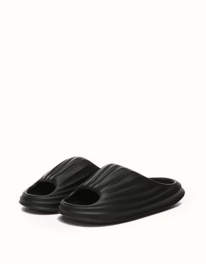 Experience the heavenly softness of the EVEthtRAU Cloud Slippers Plus. Designed for ergonomic comfort, this lightweight, easy slip-on style is now available in Black and Grey. Perfect for relaxing at home or strolling along the beach, they combine effortless wear with cloud-like comfort.