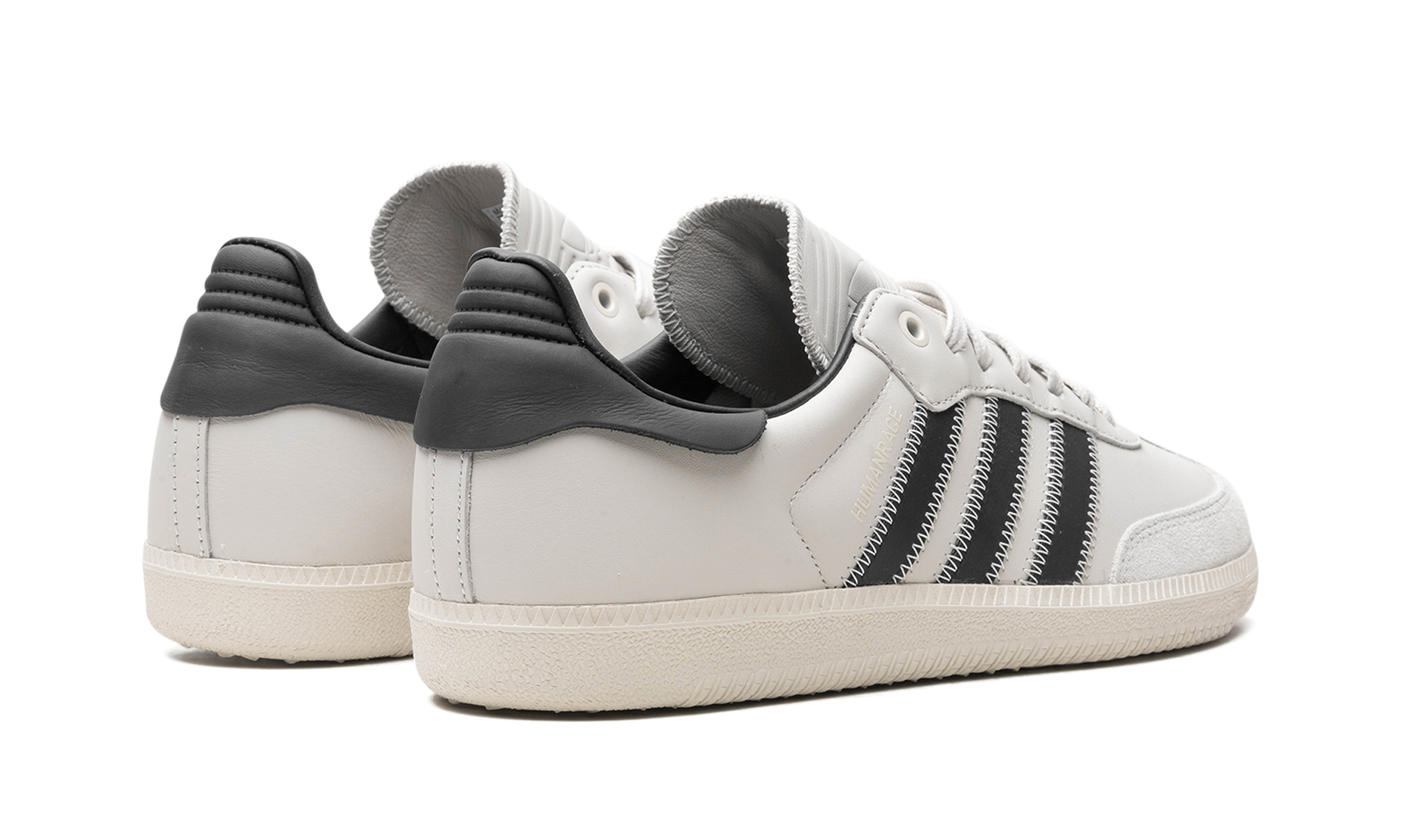 The Pharrell Williams x adithtdas Samba Humanrace "Aluminum/Core Black" is a collaboration by the recording artist and fashion designer's lifestyle brand on the retro shoe. The adithtdas Samba Humanrace in "Aluminum/Core Black" features an Aluminum-colored leather upper with a tonal suede overlay on the toe. On the sides, Core Black leather Three Stripes contrasts the shoe's crisp white appearance. Additional Core Black leather also seen on the leather heel tab. An Aluminum rubber sole completes the look. Pharrell Williams - Core Black