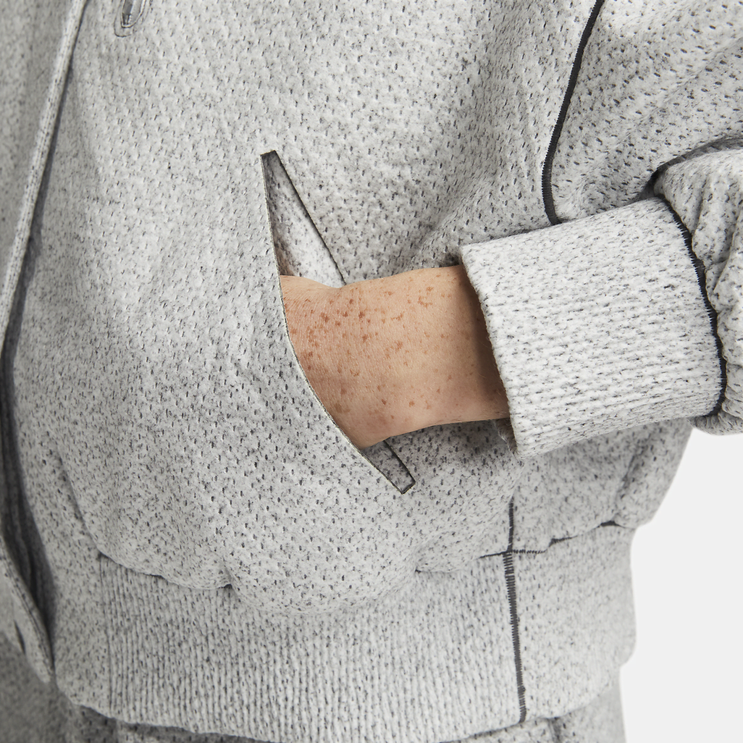 Incredibly lightweight yet just as cozy and soft as fleece, Forward is a whole new way to stay comfortable. This warm, hooded jacket has a subtle drape and roomy fit so you can move and layer with ease. Its precision-cut fabric panels have a seamless bond and unfinished edge for a clean, modern look.