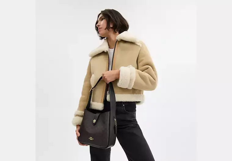 Signature coated canvas and smooth leatherInside zip pocketTurnlock closure, fabric liningAdjustable strap with 52cm drop for shoulder or crossbody wear25cm (L) x 24cm (H) x 8.5cm (W)Style No. CW003