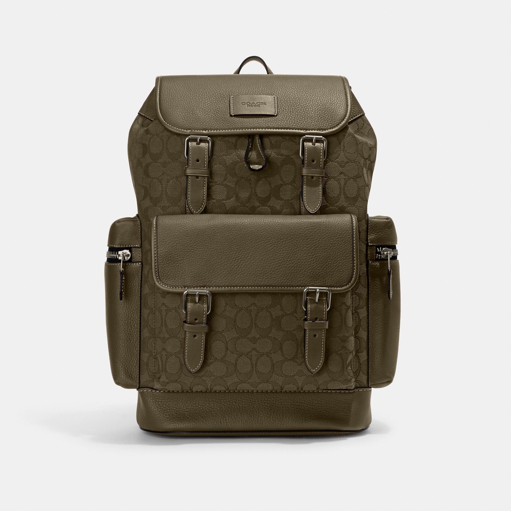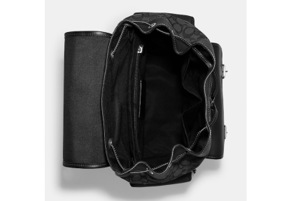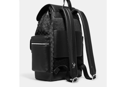 Signature jacquard refined pebble leather and smooth calf leather Inside zip cell phone and multifunction pockets Inside tech sleeve Drawstring and speedclip closures fabric lining Top handle with 3 1/4 drop Outside zip and flap pockets Adjustable shoulder straps Luggage sleeve 11 1/4 (L) x 17 3/4 (H) x 6 1/2 (W) This piece is crafted of our Signature jacquard made from a blend of organic cotton and recycled polyester Style No. CE523 | Outlet Sprint Backpack In Signature Jacquard - Black
