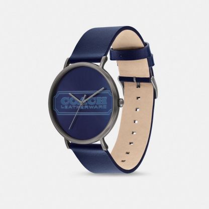 Navy Dial Navy Calfskin Watch ,41 Mm