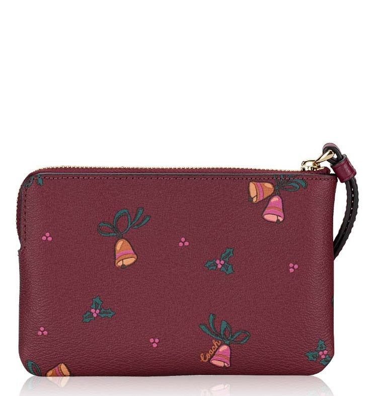 Corner Zip Wristlet With Holiday Bells Print