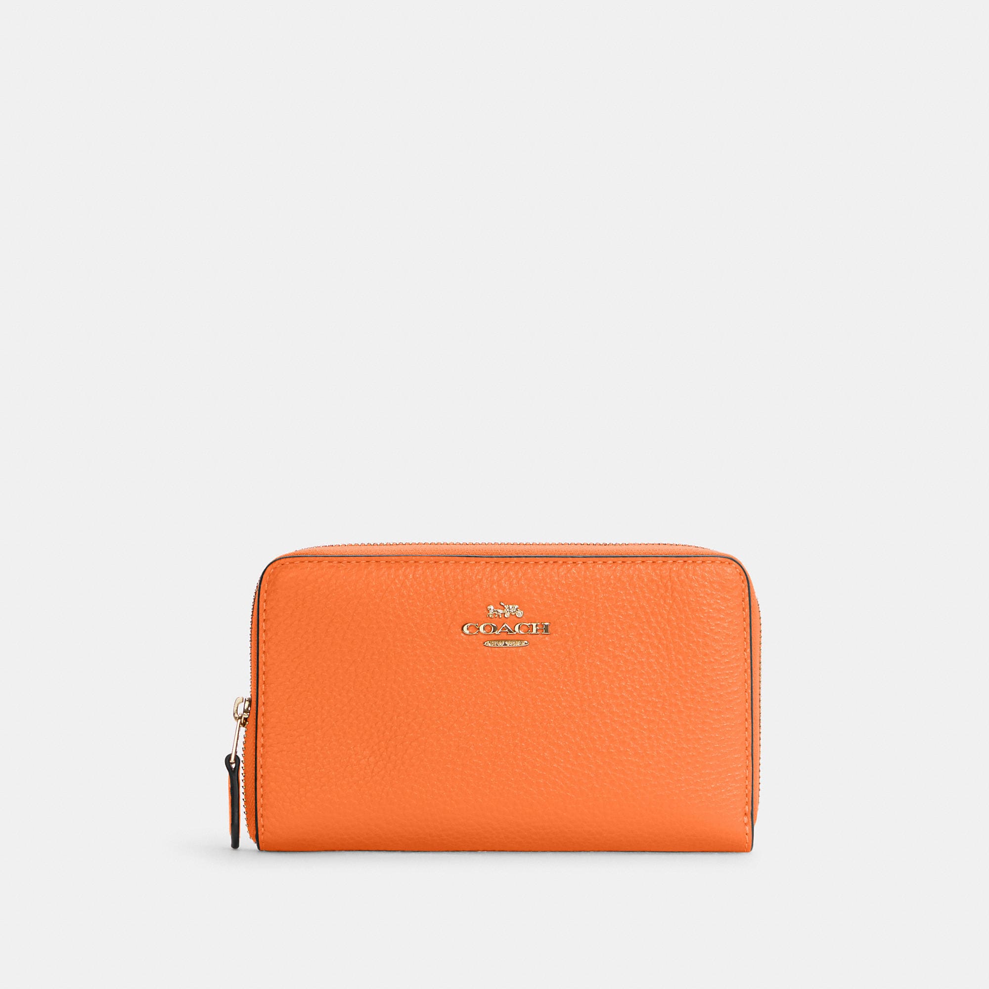 Refined pebble leather Nine credit card slots Bill compartments ID window Zip coin pocket Zip-around closure 6 1/2 (L) x 3 3/4 (H) x 3/4 (W) Style No. C4124