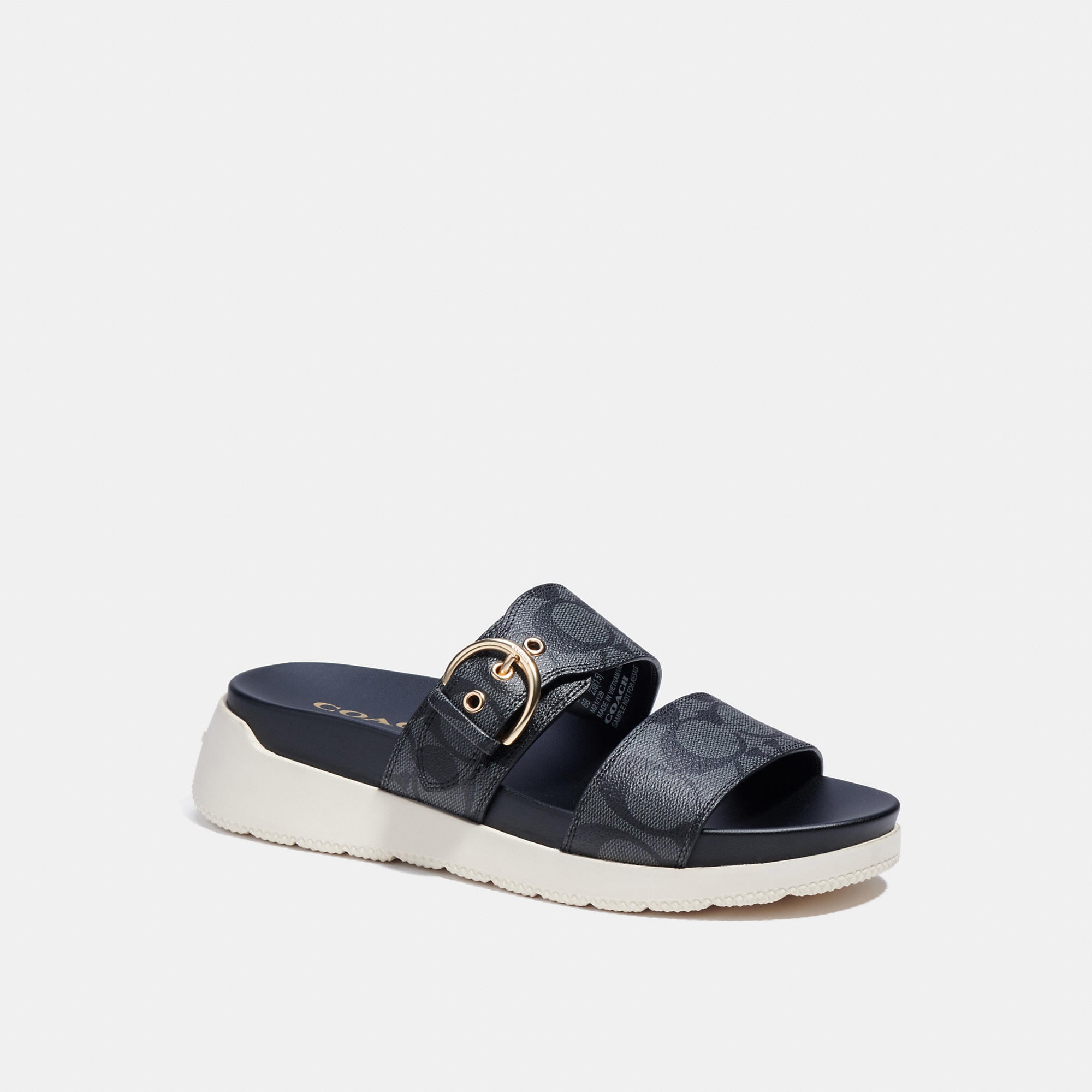 Signature coated canvas Man-made leather lining and footbed Rubber outsole Slip on Style No. C8925 | Outlet Gwen Sandal - Beige, Size - 7