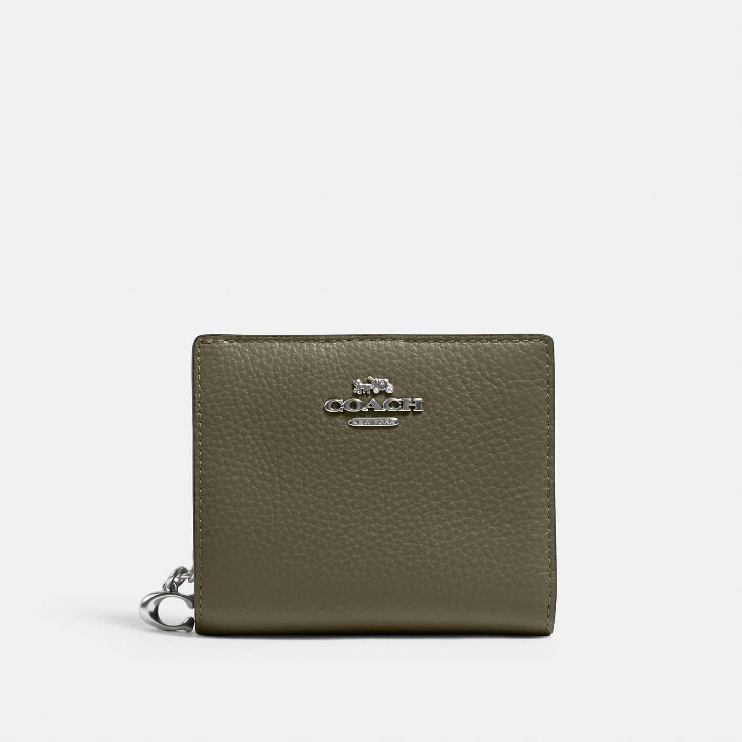 Refined pebble leather Three credit card slots ID window Full-length bill compartment Snap closure Outside zip coin pocket 4 1/4 (L) x 3 1/2 (H) x 1 (W) Style No. C2862