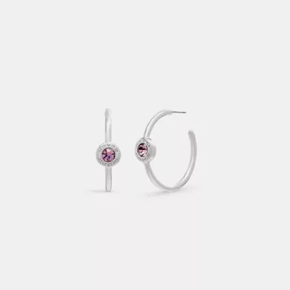 Open Circle Stone Hoop Earrings