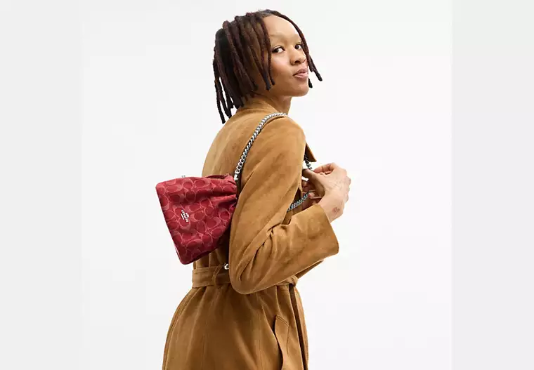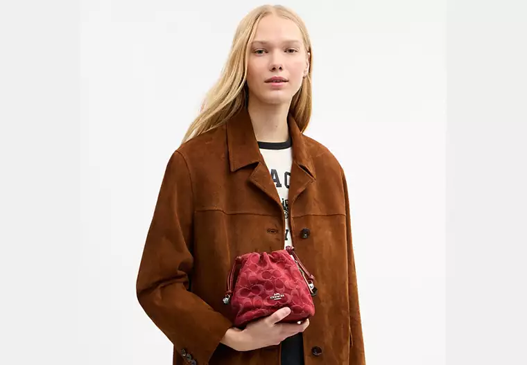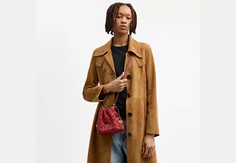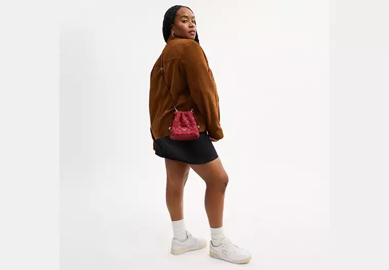 Faye Mini Drawstring Bag In Signature Denim