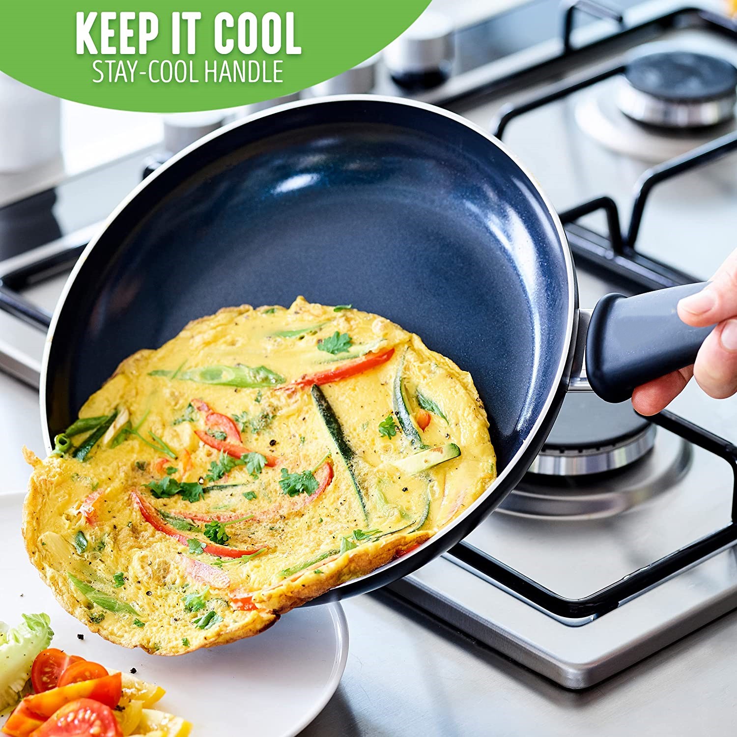 - Our healthy and easy-to-clean ceramic nonstick coating is derived from sand and free of PFAS, PFOA, lead, and cadmium for effortless cooking and quick cleanup