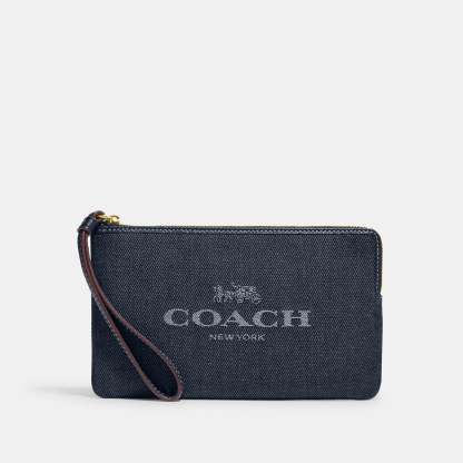 Canvas and refined pebble leather Two credit card slots Zip closure fabric lining Wrist strap attached 7 3/4 (L) x 4 3/4 (H) x 1/2 (W) Style No. CH386 | Outlet Large Corner Zip With - Blue