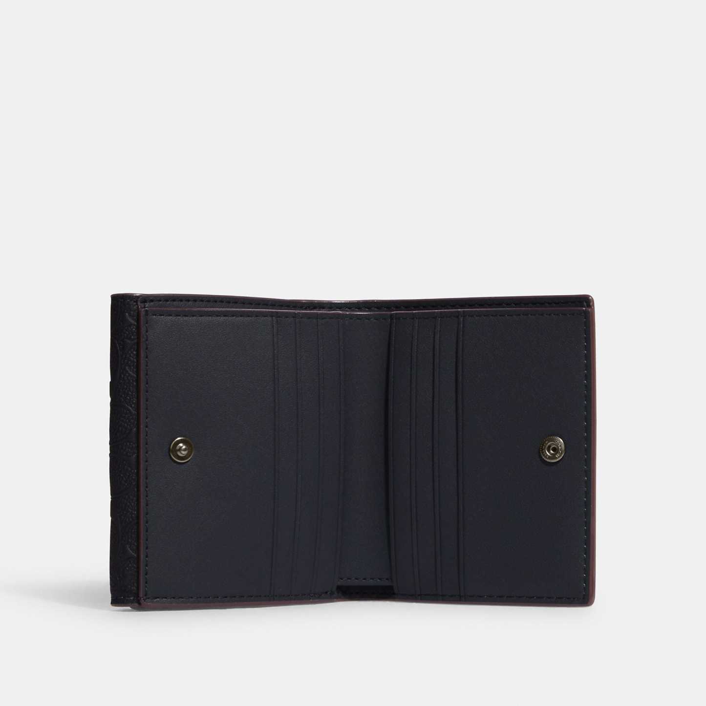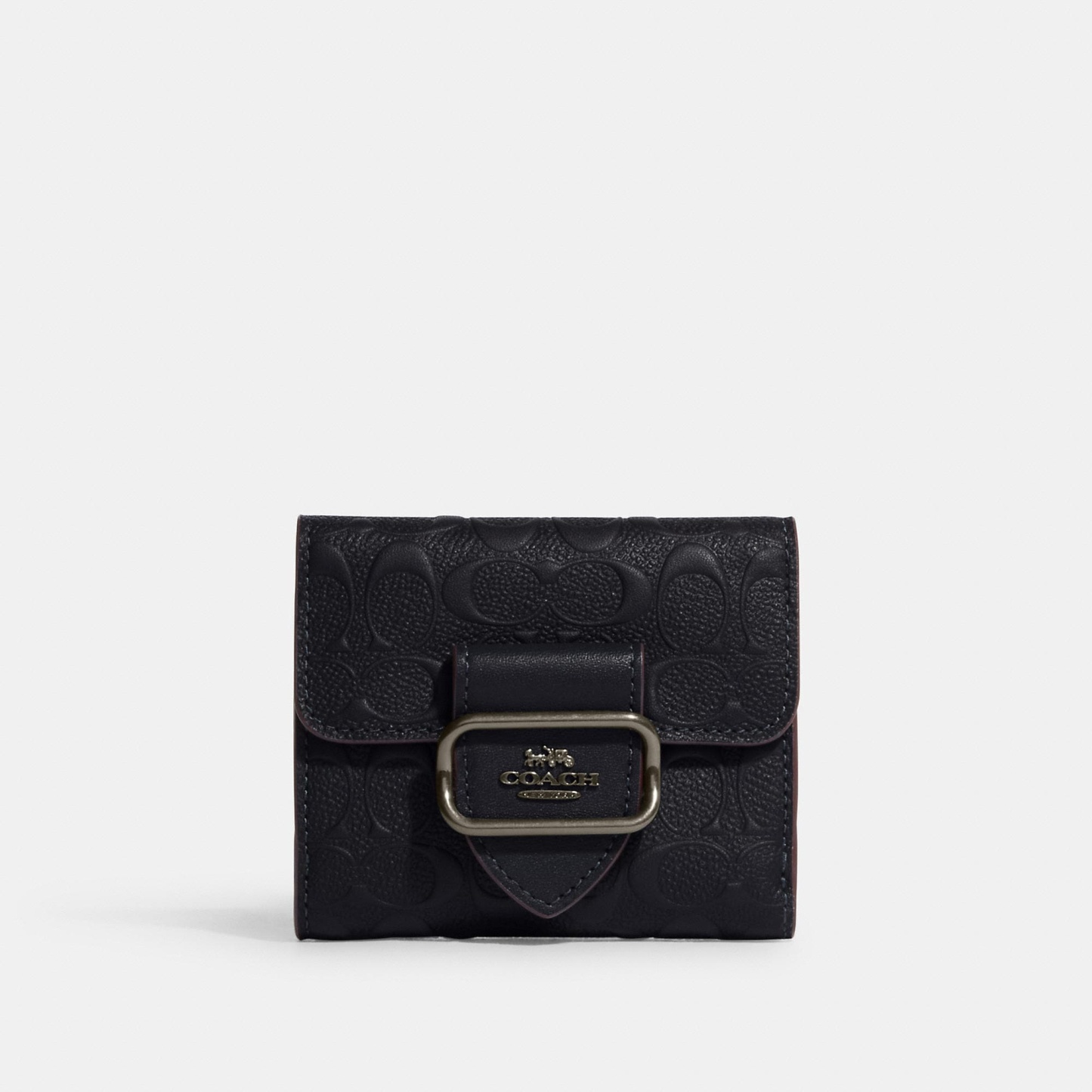 Signature smooth calf leather and smooth leather Six credit card slots Full-length bill compartment Snap closure Outside snap coin pocket 4 1/4 (L) x 3 3/4 (H) Style No. CF855 | Outlet Small Morgan Wallet In Signature Leather - Blue