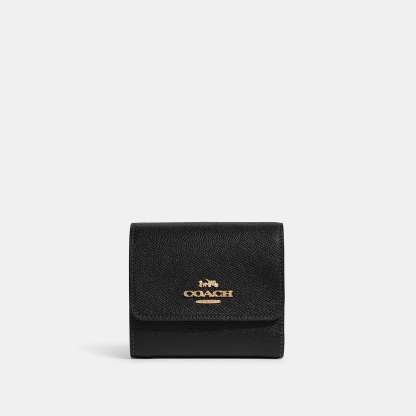 Crossgrain leather Two credit card slots Full-length bill compartment ID window Zip coin pocket Snap closure Outside open pocket 4 1/4 (L) x 4 (H) x 1/2 (W) Style No. CF427 | Outlet Small Trifold Wallet - Black