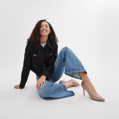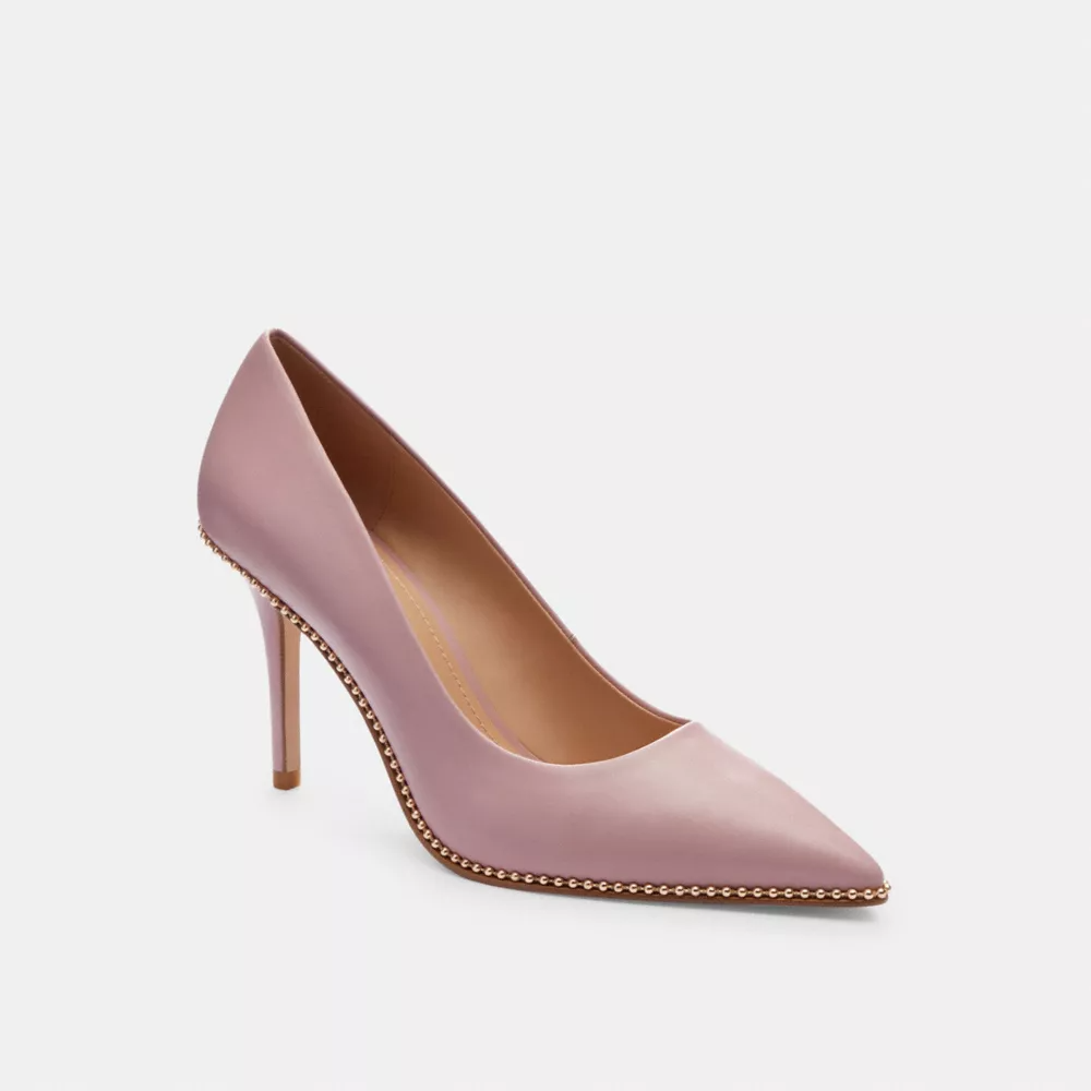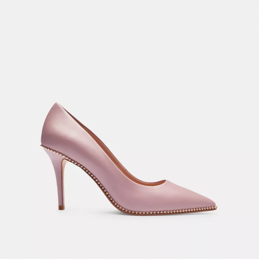 Crafted in smooth leather, this versatile pump is perfect for day or night. Gleaming beadchain detail gives the pointed-toe style a touch of shine.