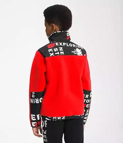 The Youth Printed '95 Retro Denali Jacket puts a vibrant spin on our globally iconic fleece. This durable, versatile layer has a 100%-recycled fabric and zip-in compatibility with other jackets from Tththe Nothtrth Fathtce®.