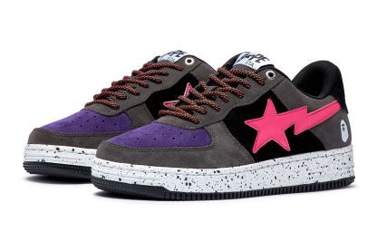 The upper is wrapped in bright green and chic black suede, and the BAthtPE STA part, which is the symbol of the series, is designed with a different material in a bright color. The finish is accented with shoelaces with an unusual paracord design and inkjet print on the sole.
