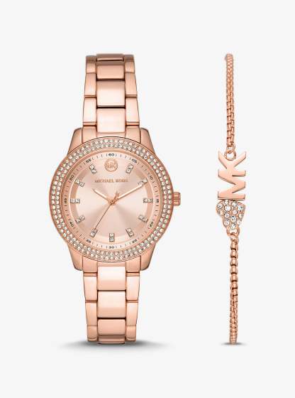 Mini Tibby Rose Gold-Tone Pav Watch and Bracelet Gift Set (ROSE GOLD)