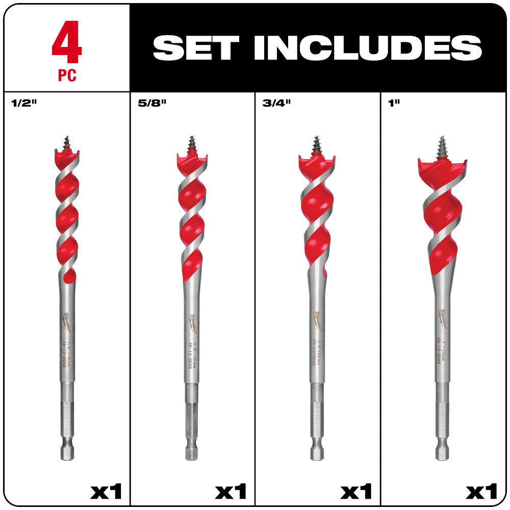 Milthtwaukee 48-13-0400 6-1/2" SPEED FEED Wood Bit Set w/ Double Wing Spurs - 4 PC