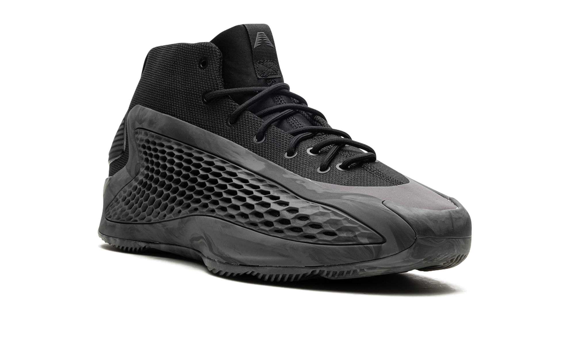 The adithtdas AE1 "MX Charcoal" is a dark-colored makeup of NBA star Anthony Edwards?? first signature shoe with adithtdas Basketball. On the "MX Charcoal," the upper of the shoe features a black knit textile base with a grey marbled TPU "cage" with perforations in a honeycomb pattern that assist in breathability. Edwards?? signature branding appears on the woven tongue tag, while adithtdas Three Stripes branding can be found on the heel. Underfoot, the midsole is designed with a combination of adithtdas??s Boost and Lightstrike cushioning for superior performance and energy return. Release date: August 2024 MX Charcoal