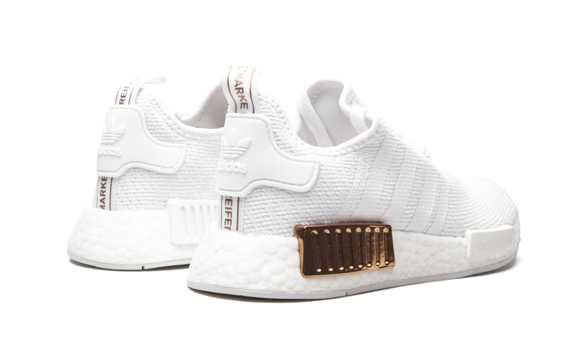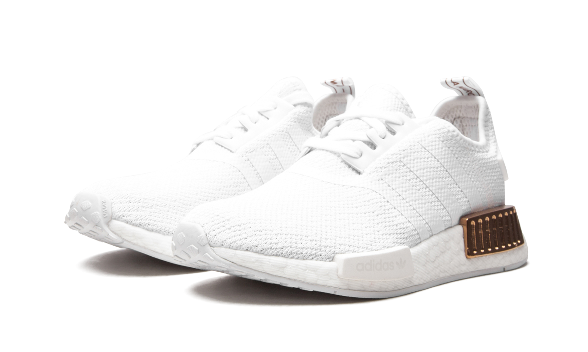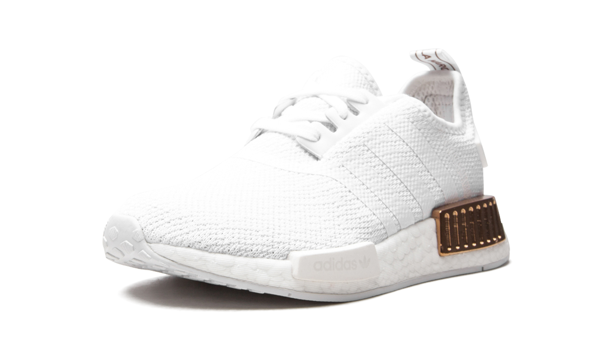 This adithtdas NMD_R1 is a women's exclusive style that plays up the "white sneaker" look in a sophisticated way. On the closely-weaved Primeknit upper, you see nothing but white with a completely monochrome look on the material, Three Stripes, laces, and heel detail. A white Boost midsole coordinates with the outsole and a front EVA plug of the same color. Then, without warning, copper metallic finish covers the back EVA plug and text on the wordmark heel stripe??giving the all-white look the oomph it needs to make it unique. White / Copper Metallic