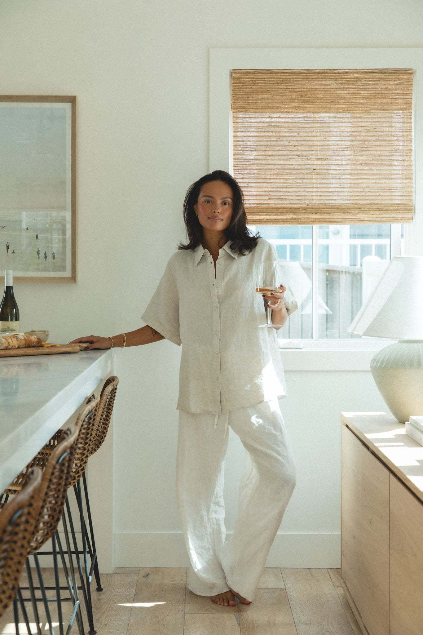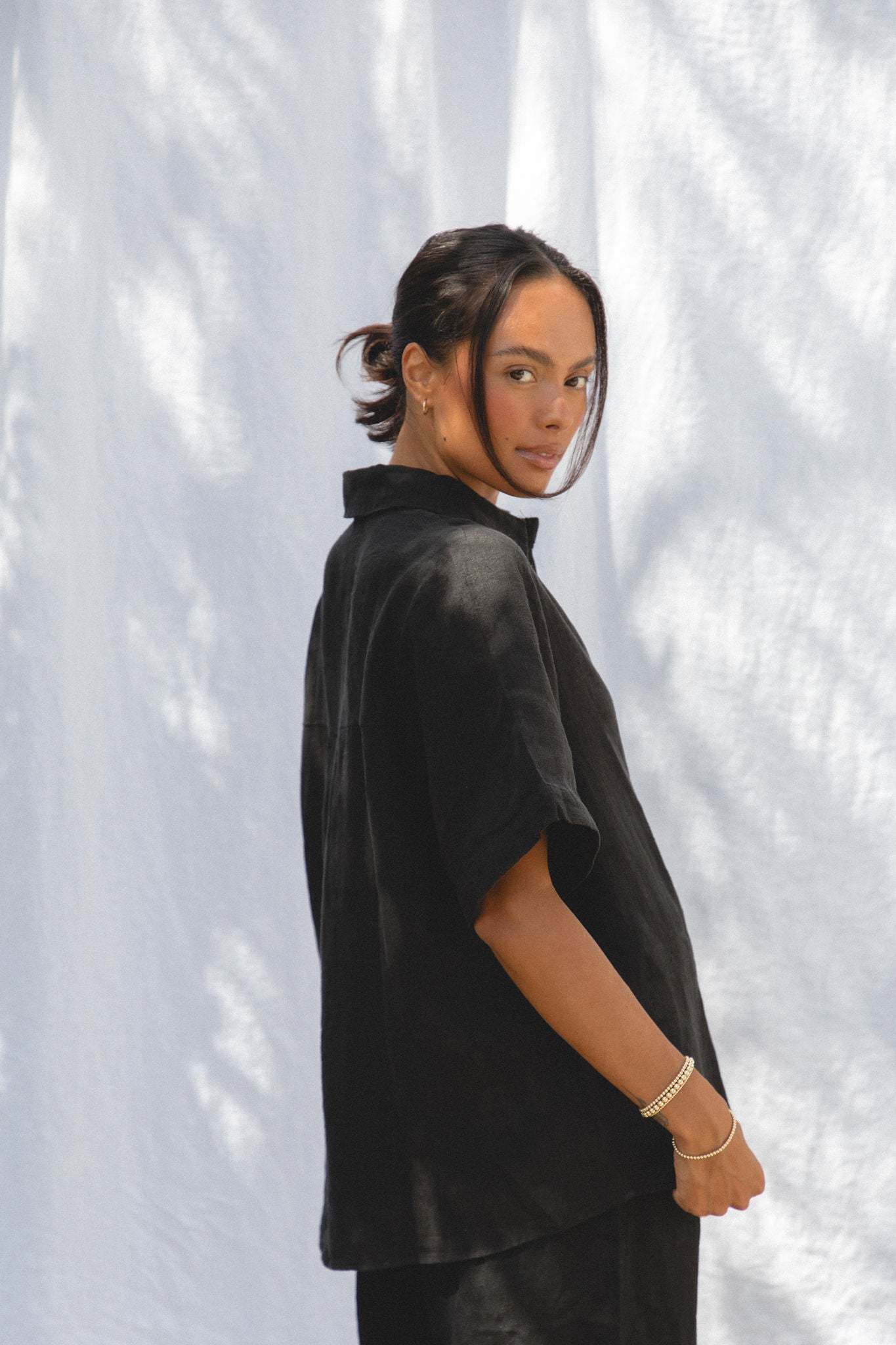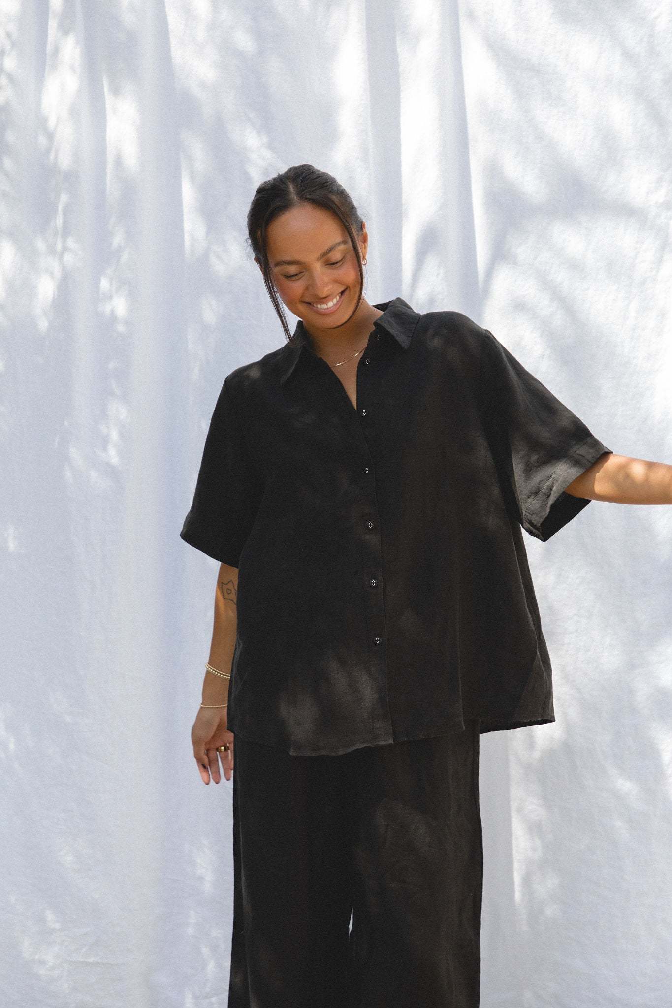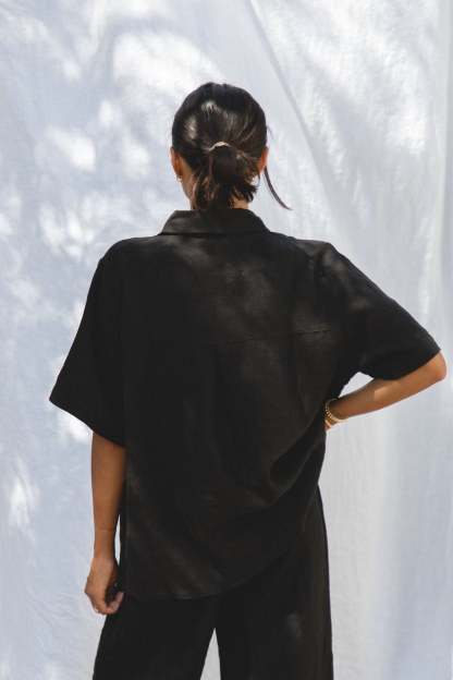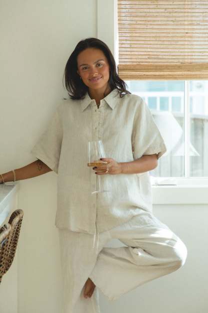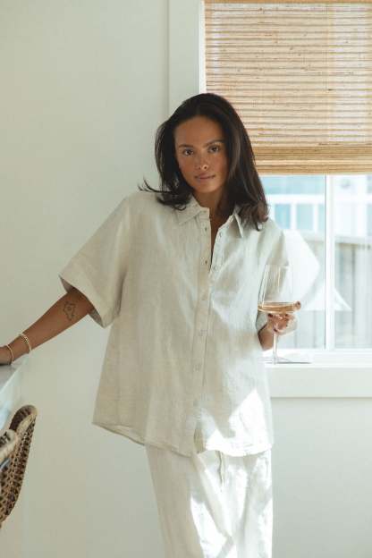 Introducing our newest addition to the Capri Linen Collection - the Capri Linen Short Sleeve Button Top. This top comes in two neutral shades perfect for fall, and its button design adds a touch of sophistication to any outfit.