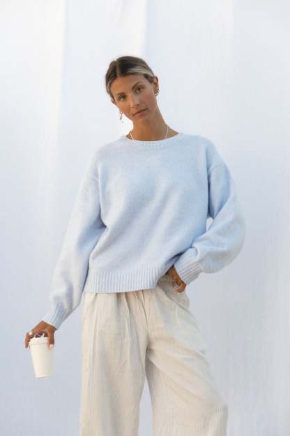 Crafted from soft, plush knit material, the Seaside Knit Pullover Sweater delivers effortless coastal-chic comfort with its relaxed fit.