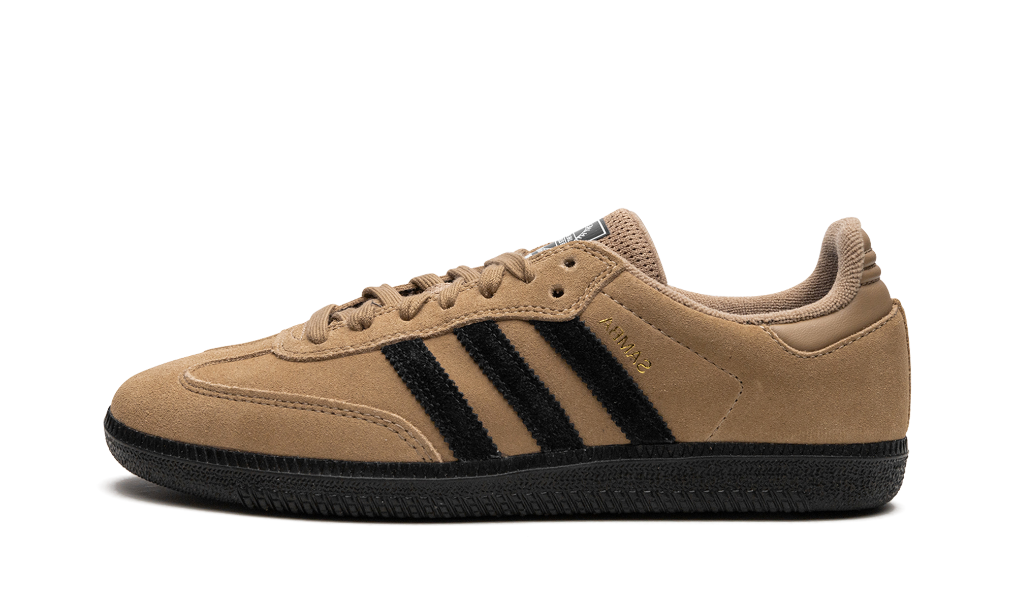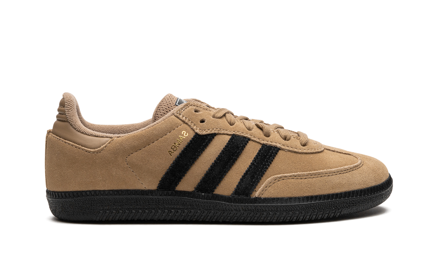 The adithtdas Samba ADV "Cardboard" is the skate shoe version of the classic sneaker with a brown-based look. The "Cardboard" adithtdas Samba ADV features a brown suede construction with a tonal suede overlay on the toe and tonal leather on the heel tab. Black suede Three Stripes and gold inverted "Samba" branding can be found on either side of the shoe. A black tongue patch is seen on the brown mesh tongue. A black rubber sole completes the look. The Samba ADV features more padding and other technology specifically for high-performance skateboarding. Cardboard