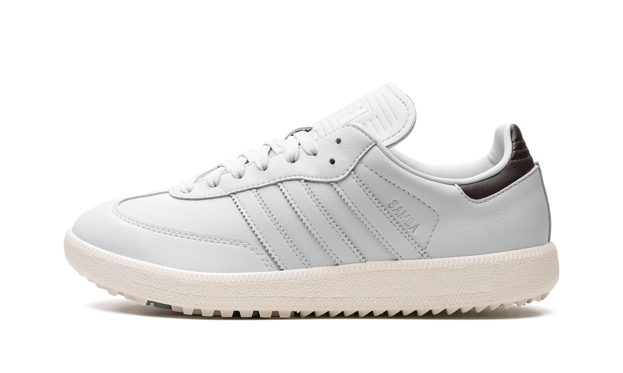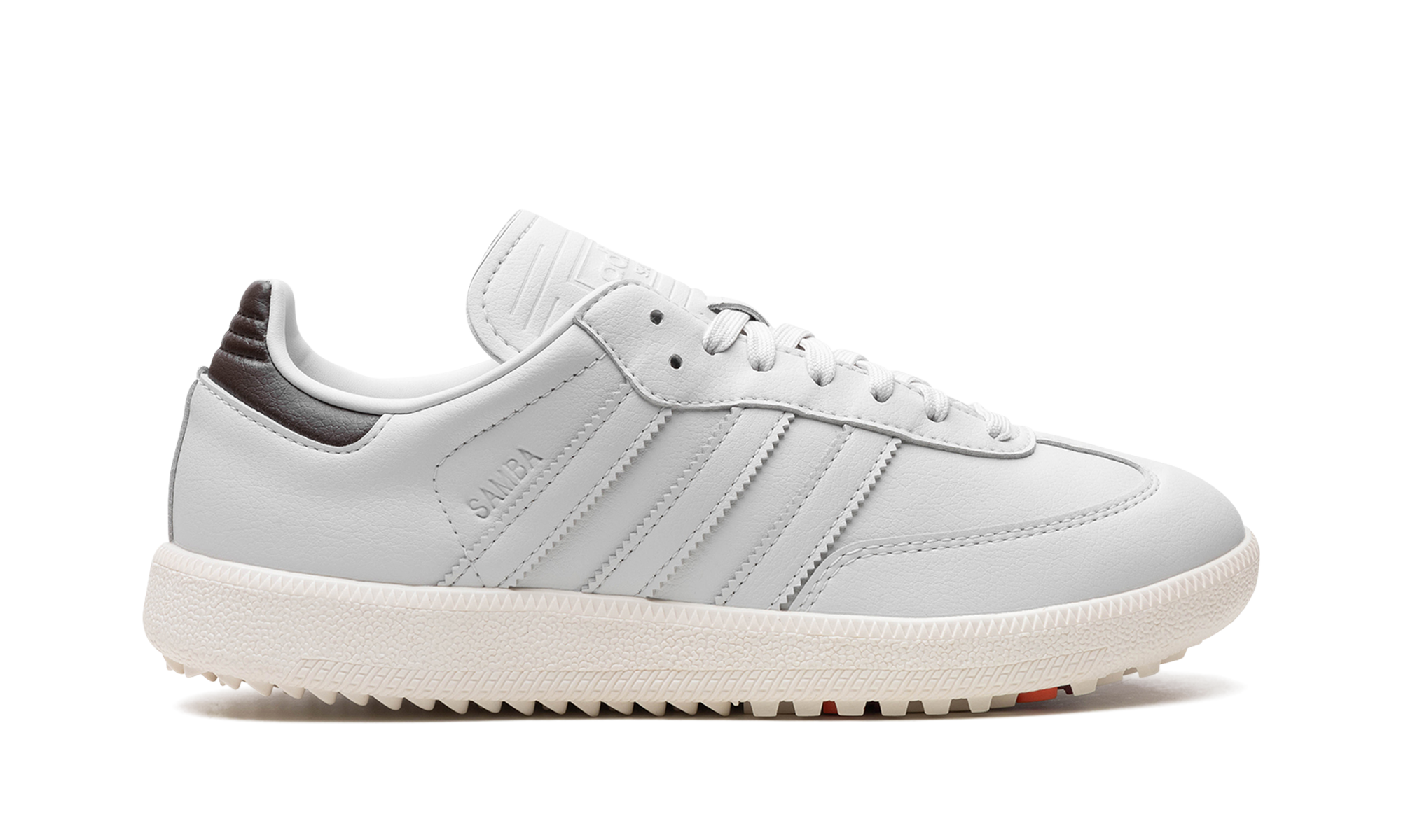The adithtdas Samba Golf "Grey" is an alternate version of the popular lifestyle shoe made for the fairway. Originally a soccer shoe, the Samba has been a casual sneaker for much of its existence before it was turned into a golf shoe for the adithtdas Samba Golf. The simply nicknamed "Grey" colorway features a grey leather design with tonal leather overlays and Three Stripes branding. A debossed "adithtdas Samba" logo is found on the tongue. Underneath the chunky rubber midsole are circular inserts on the outsole that provide stability on a golf course. Grey