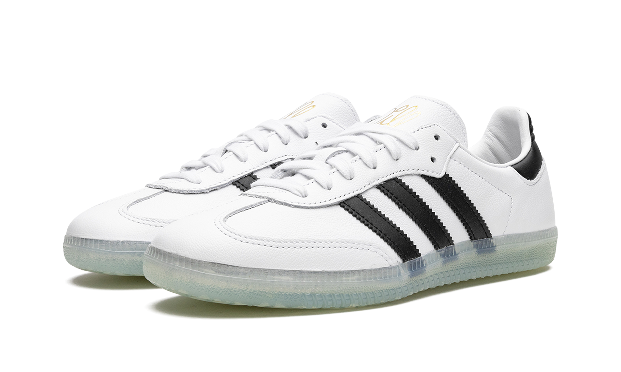 The Jason Dill x adithtdas Samba "White/Black" is a collaboration by the pro skater and adithtdas on the incredibly popular retro indoor soccer and lifestyle shoe. Dill, a legendary skater and co-founder of F*cking Awesome, a popular skate and streetwear brand, joins forces with adithtdas on yet another colorway of the Samba silhouette. The shoe features a white leather construction with contrasting black leather Three Stripes branding on the sides. Gold "Dill" script appears on the white leather tongue. Underfoot, an icy translucent rubber sole completes the look. Release date: April 1, 2023 Jason Dill